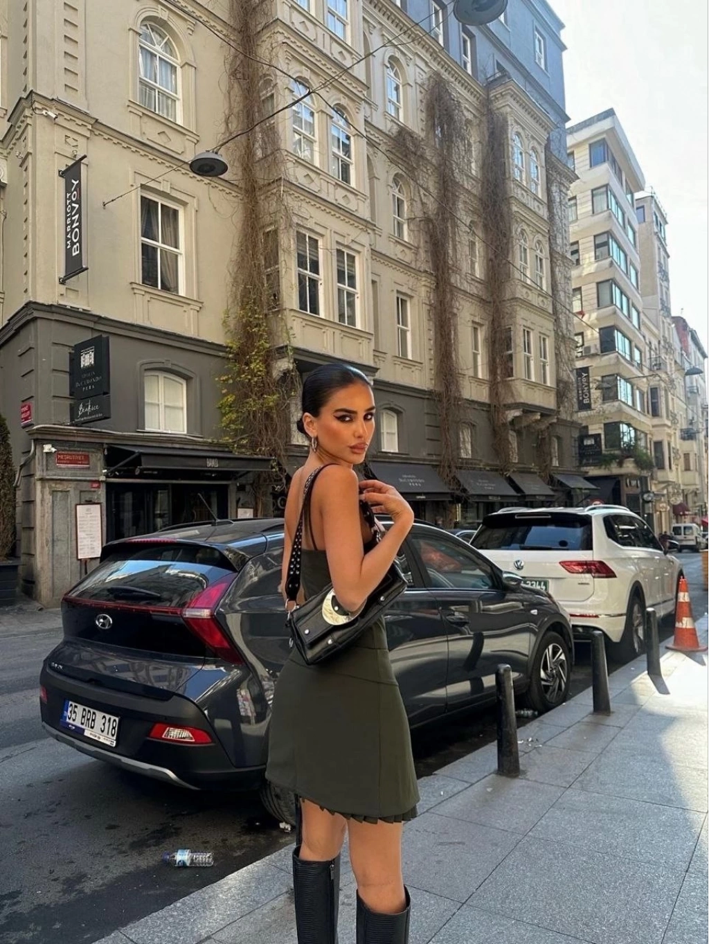 İki Parçalı Pileli Askılı Mini Elbise - Haki -