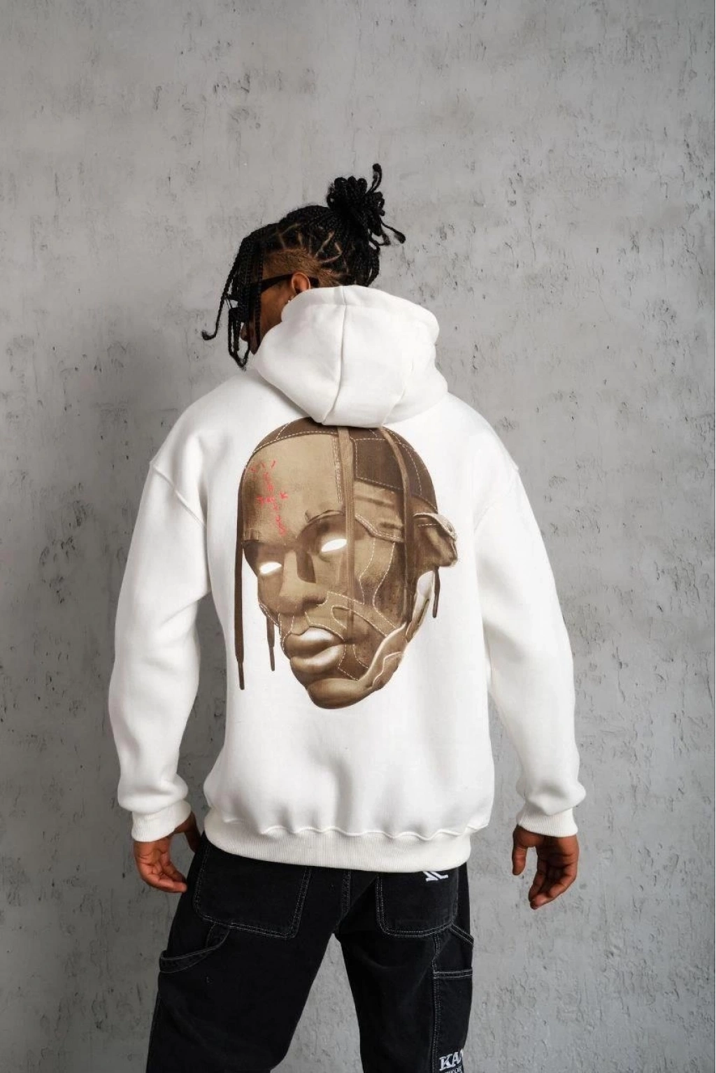 Kordonlu Arka Maske Kordon Saçlı Kapüşonlu - Beyaz -
