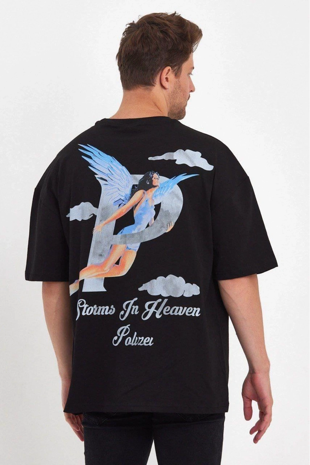 Melek Baskılı Oversize T-shirt - Siyah -