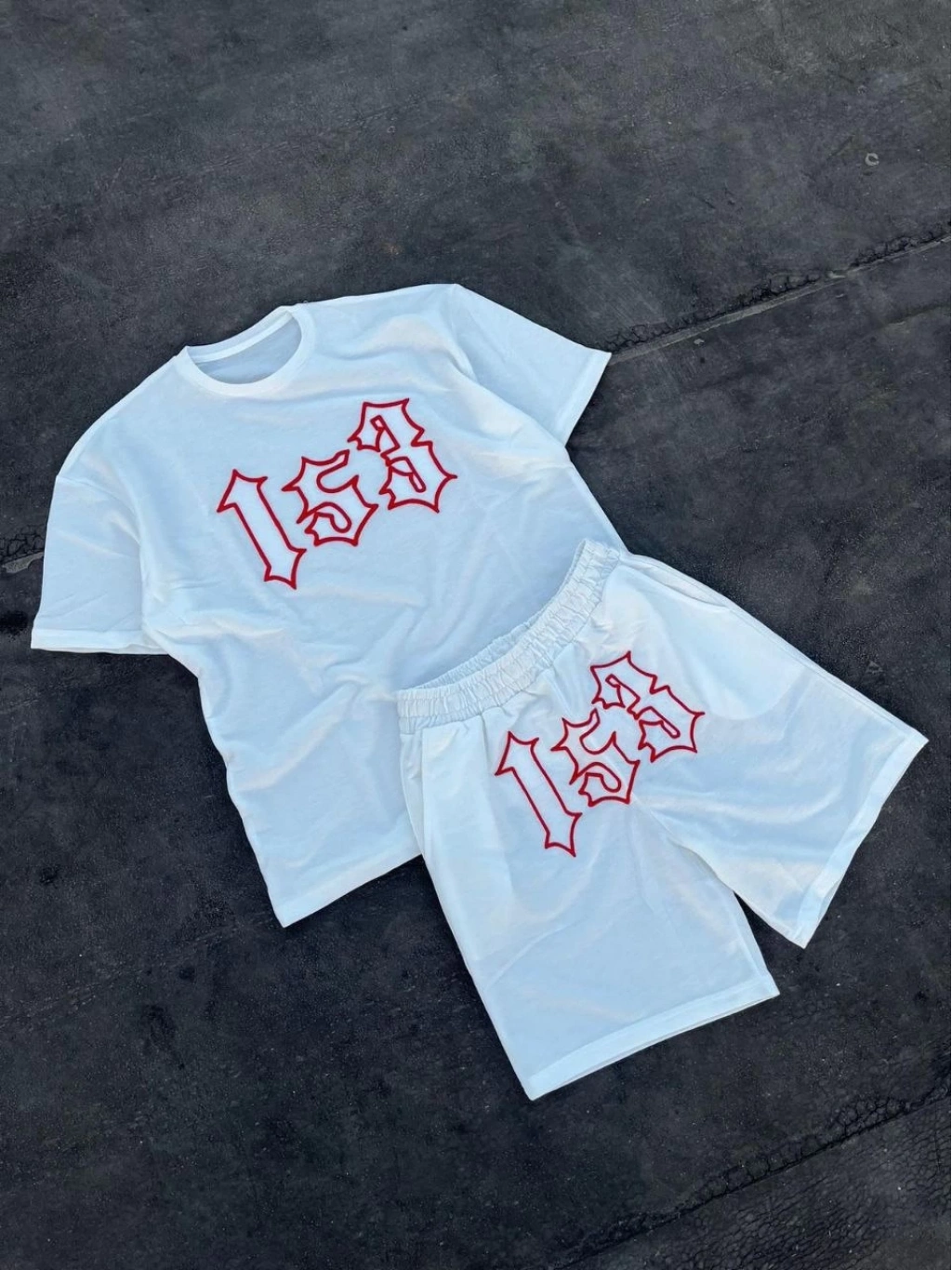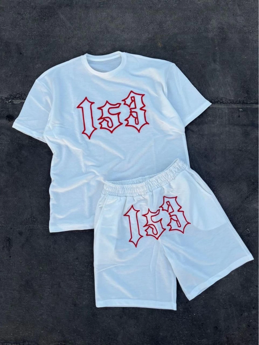 Nakış İşlemeli Şortlu Takım - Beyaz -