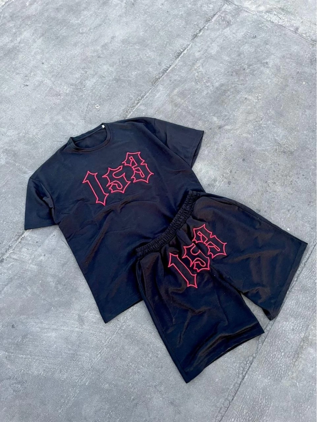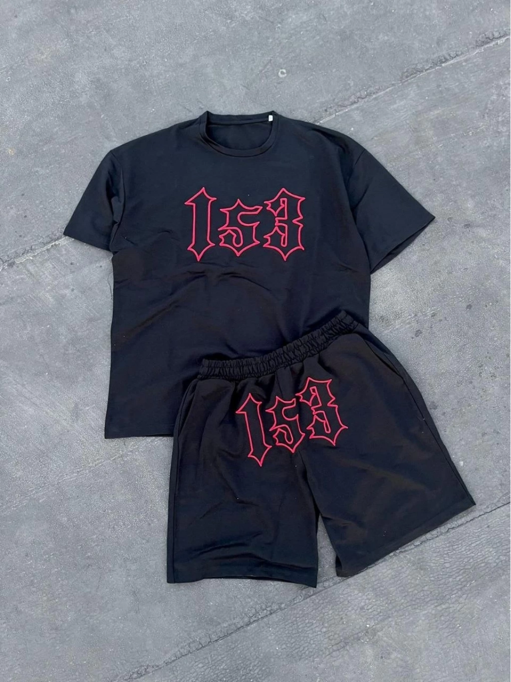 Nakış İşlemeli Şortlu Takım - Siyah -