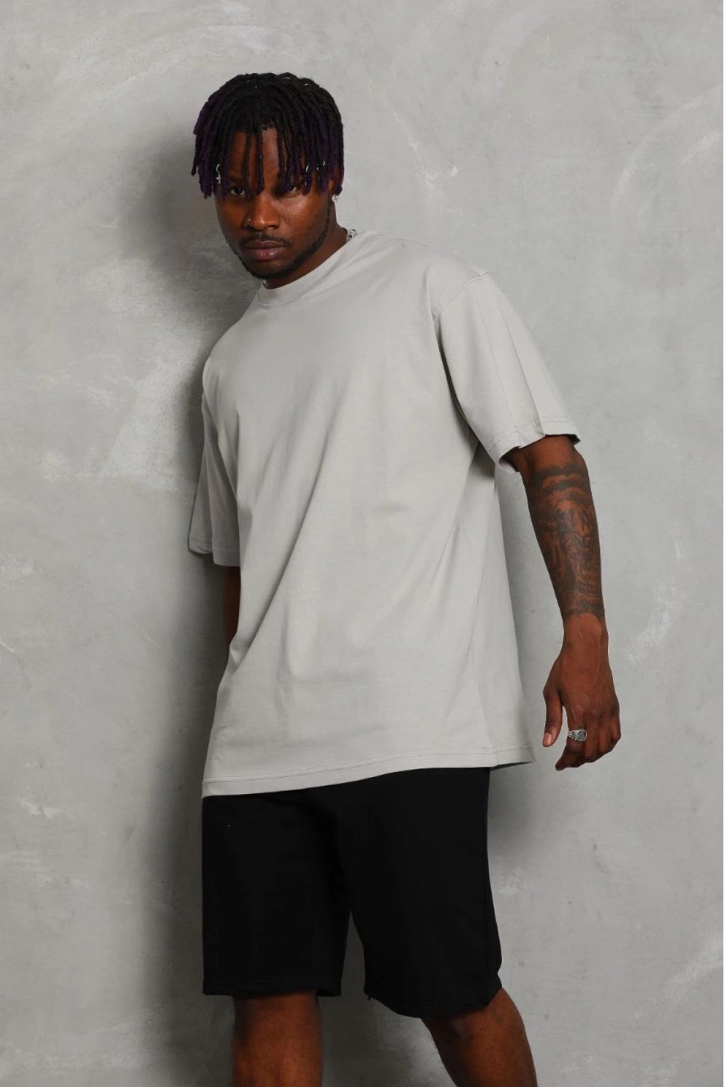 Oversize Düz Bisiklet Yaka T-Shirt - Gri -