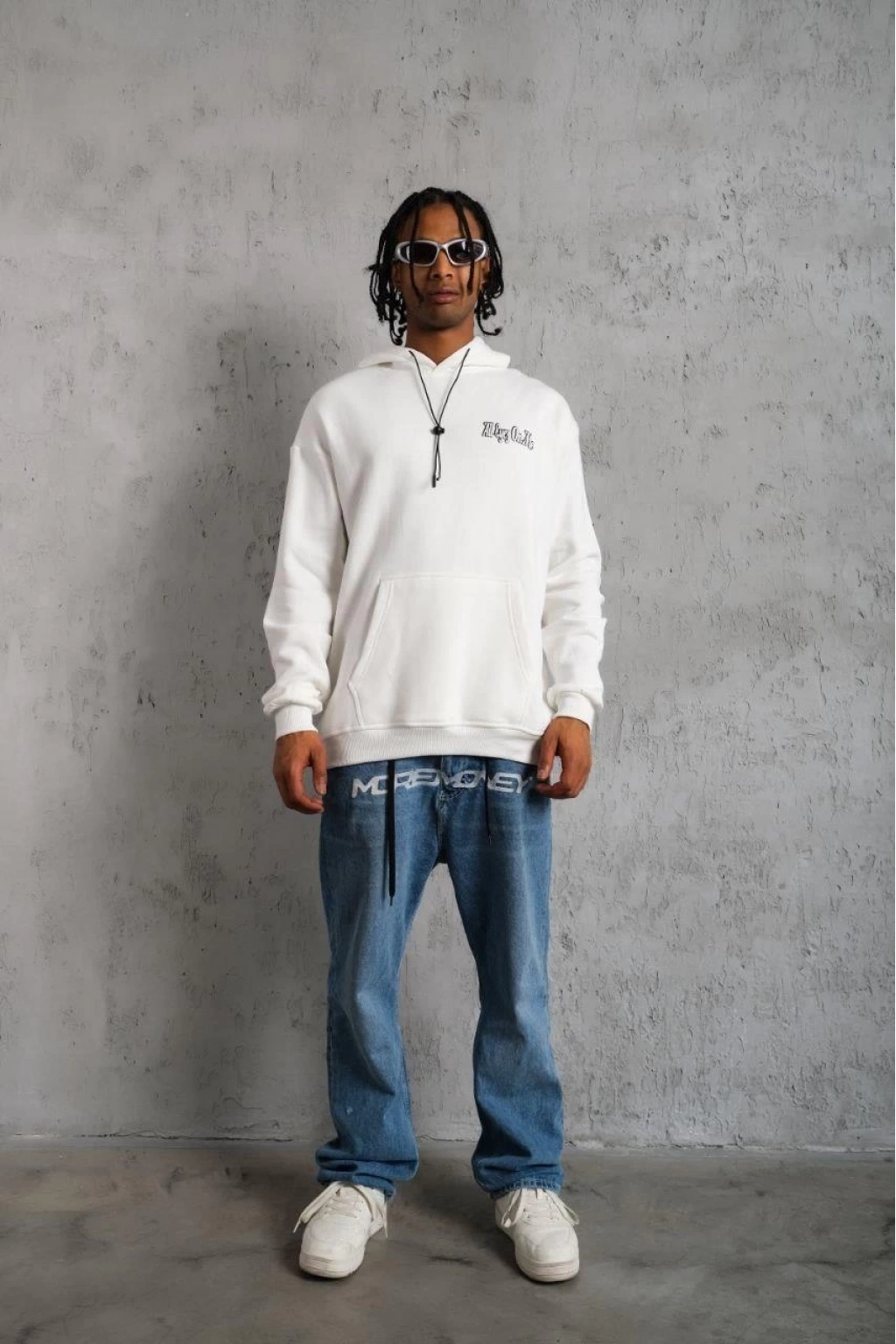 OversizeKapüşonlu Sweat – Kol ve Etek Ribana DetaylıBeyaz -