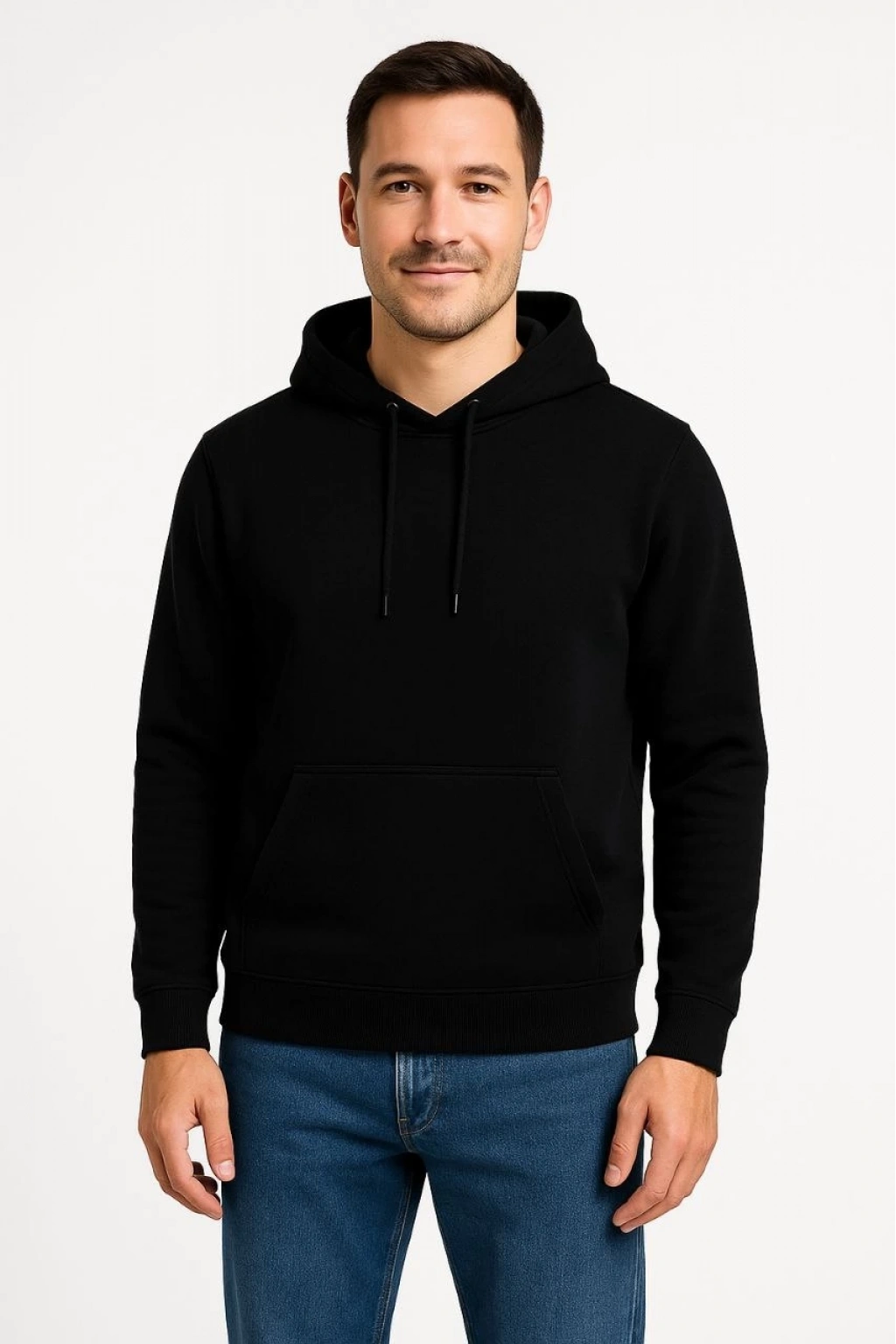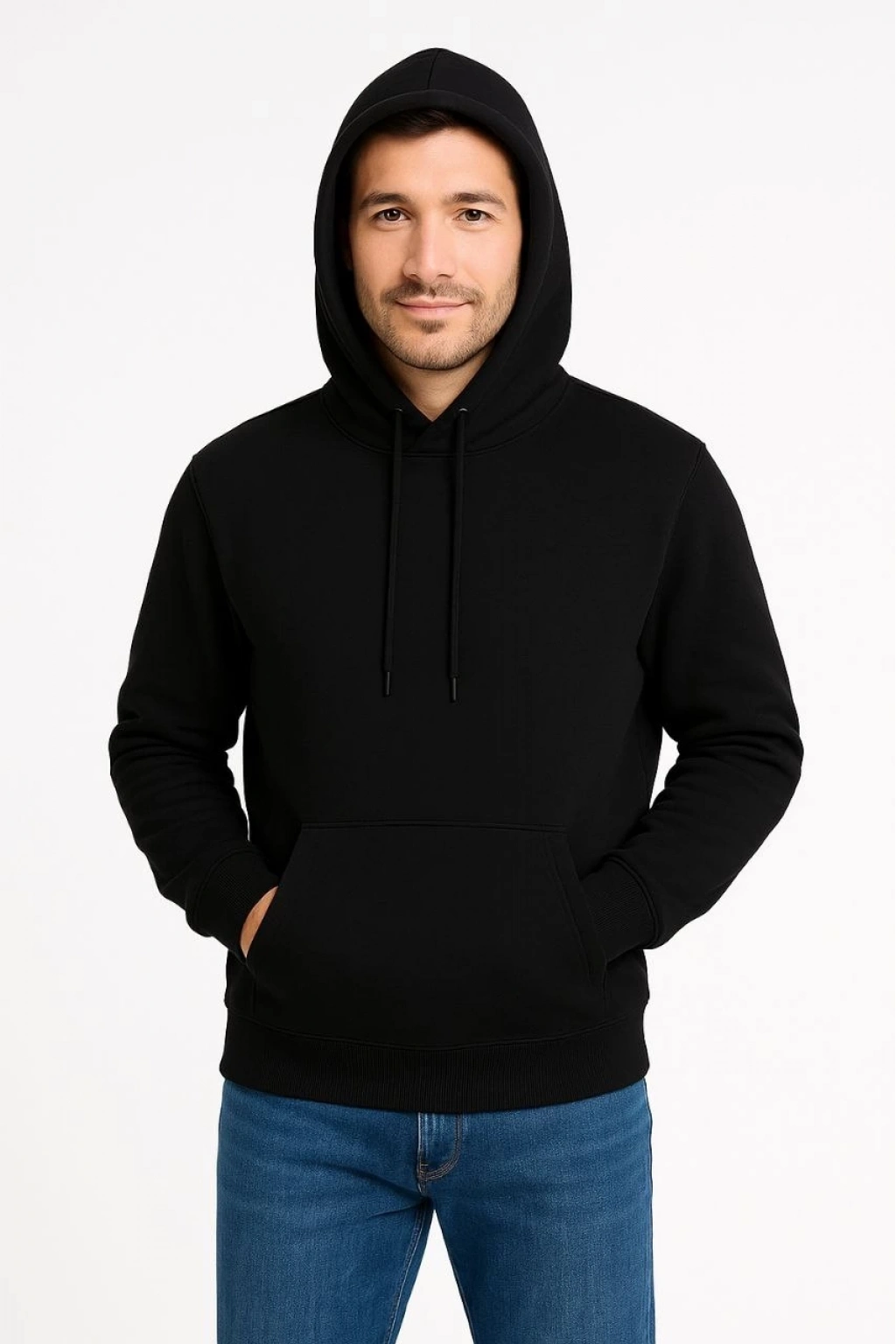 Üç İplik Kapüşonlu Kanguru Cepli SweatShirt hoodie - Siyah -