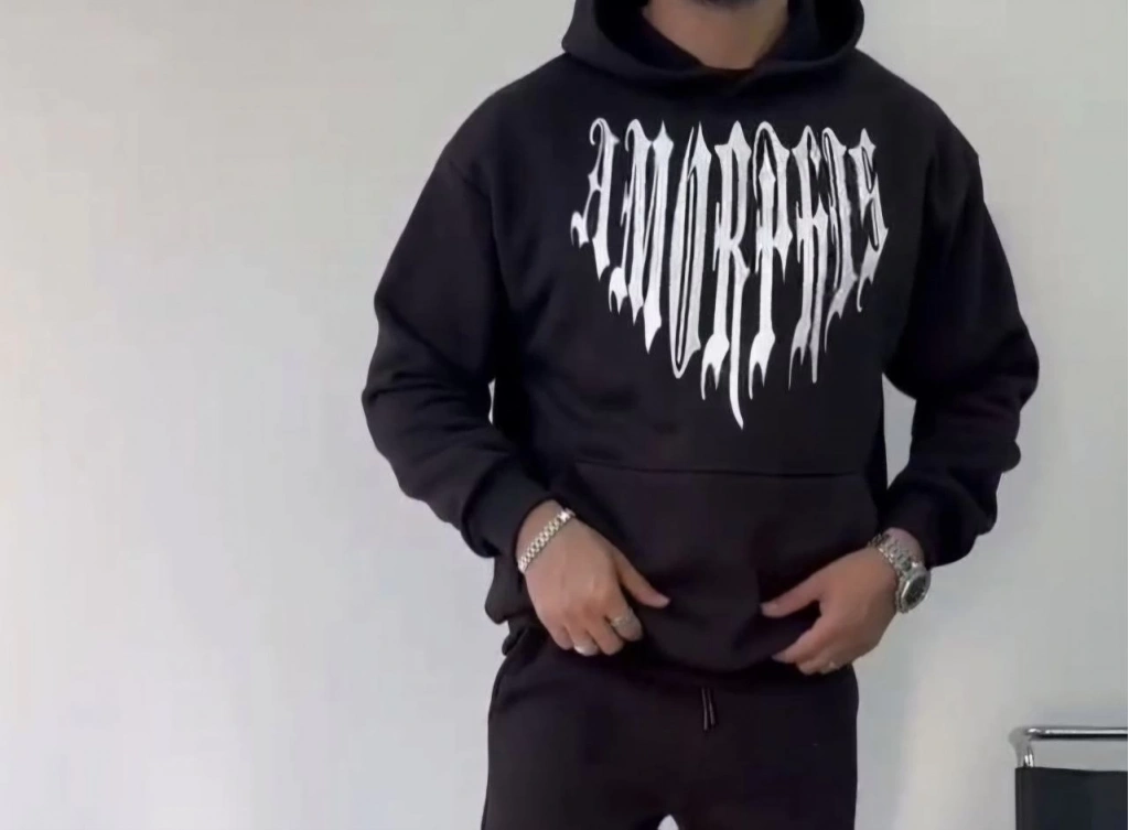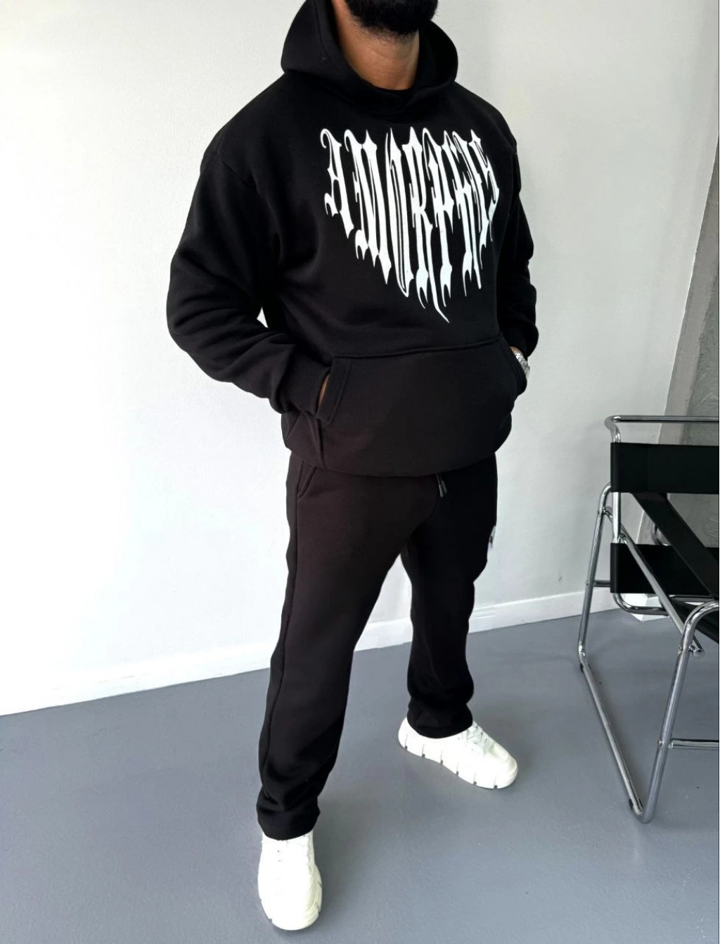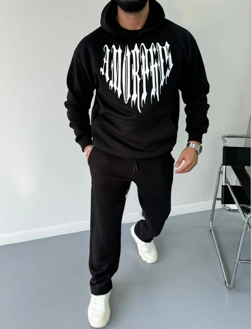 Uzun Kol Kapüşonlu Baskılı SweatShirt - Siyah -