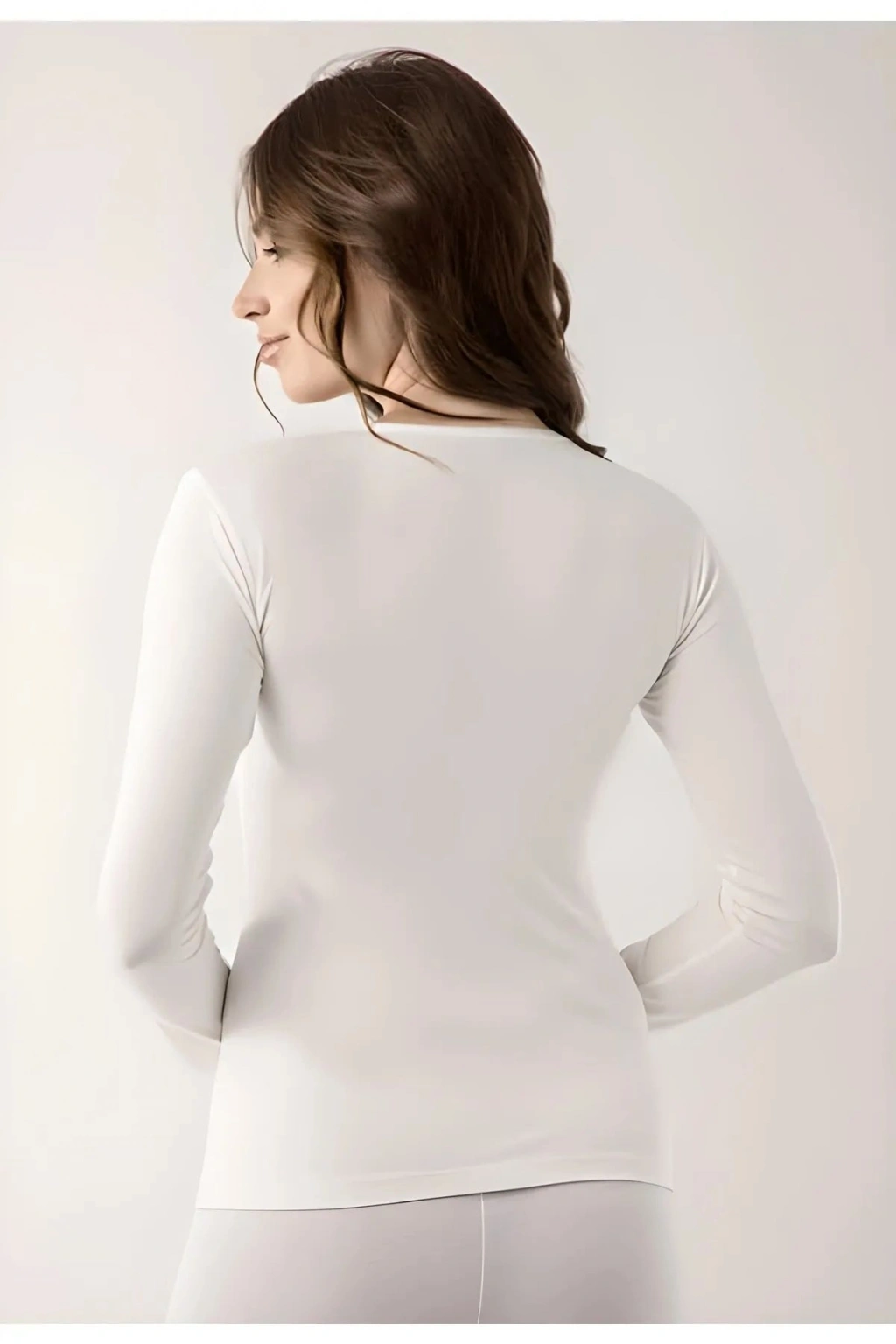 Vivaldi Kadın Beyaz Uzun Kol Bisiklet Yaka Body Likralı 352