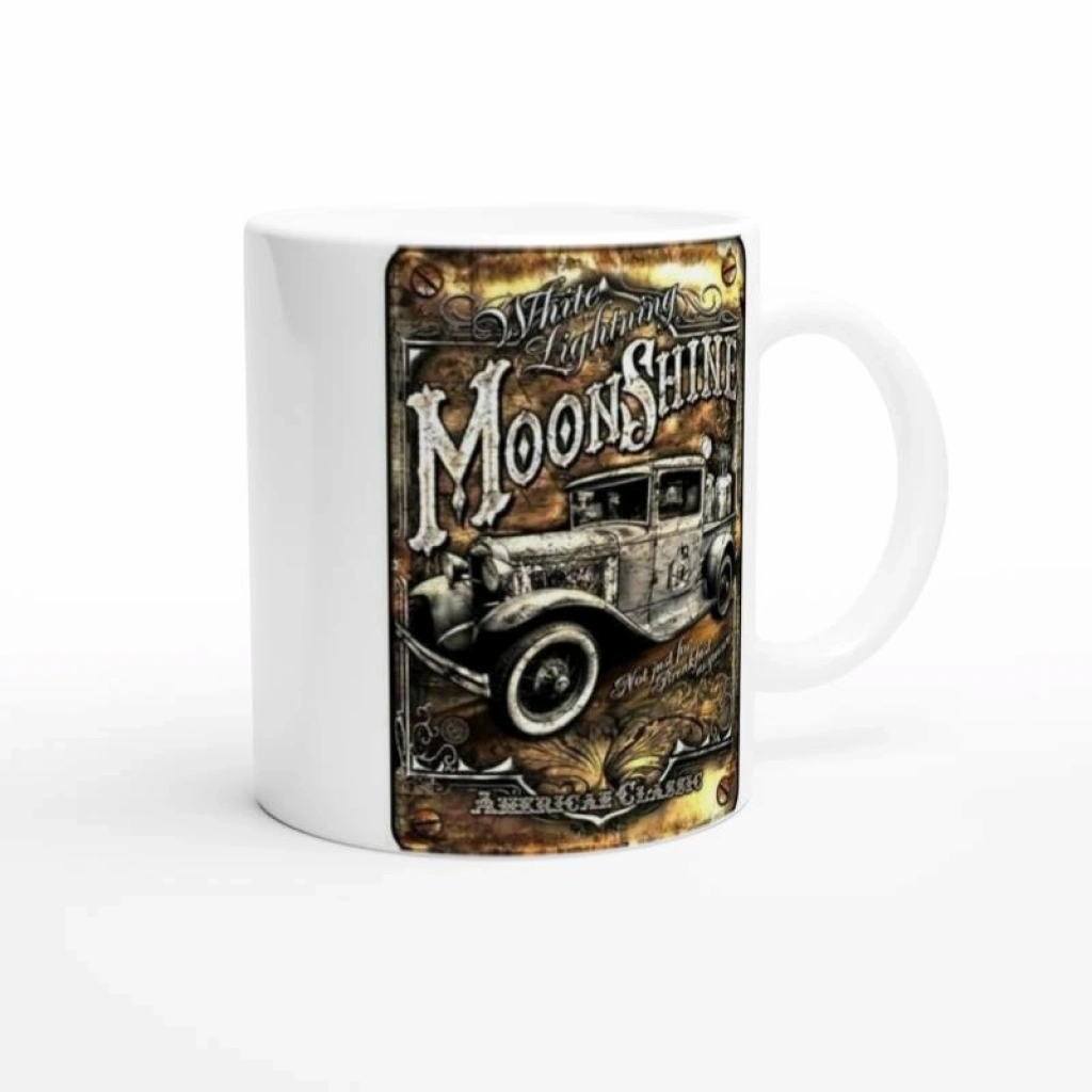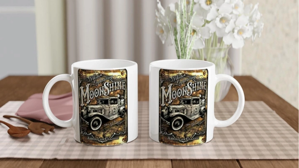 Eskitilmiş görünümü, vintage yazı stili ve kaçak içki dönemi araç figürüyle koleksiyonluk ve dikkat çekici bir parçadır.