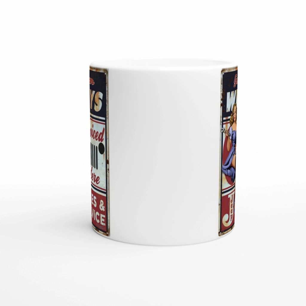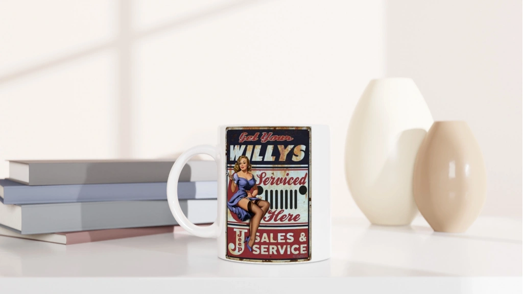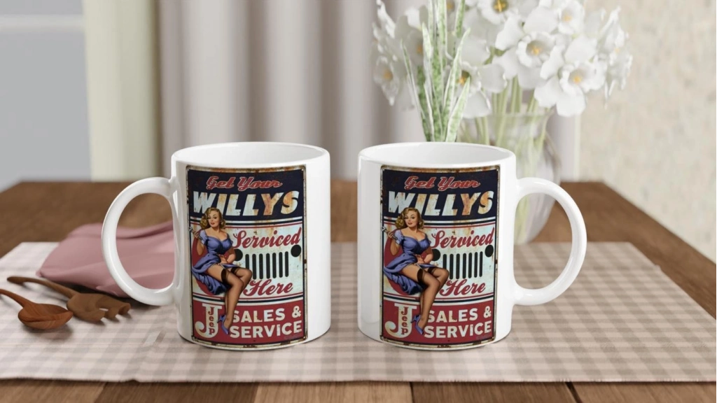 1940’ların reklam estetiğini yansıtan bu eğlenceli kupa, Jeep tutkunlarına servis ruhunu mutfaklara taşıyor.