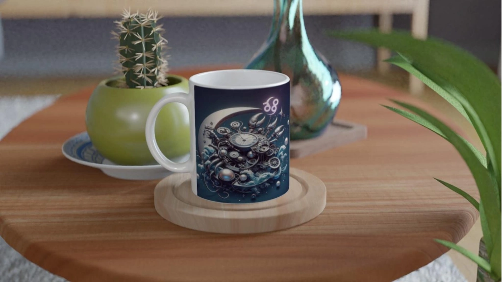 Yengeç Burcu Baskılı Kahve Kupası - Zamanın Çarkları Astroloji Mekanizması Vs4