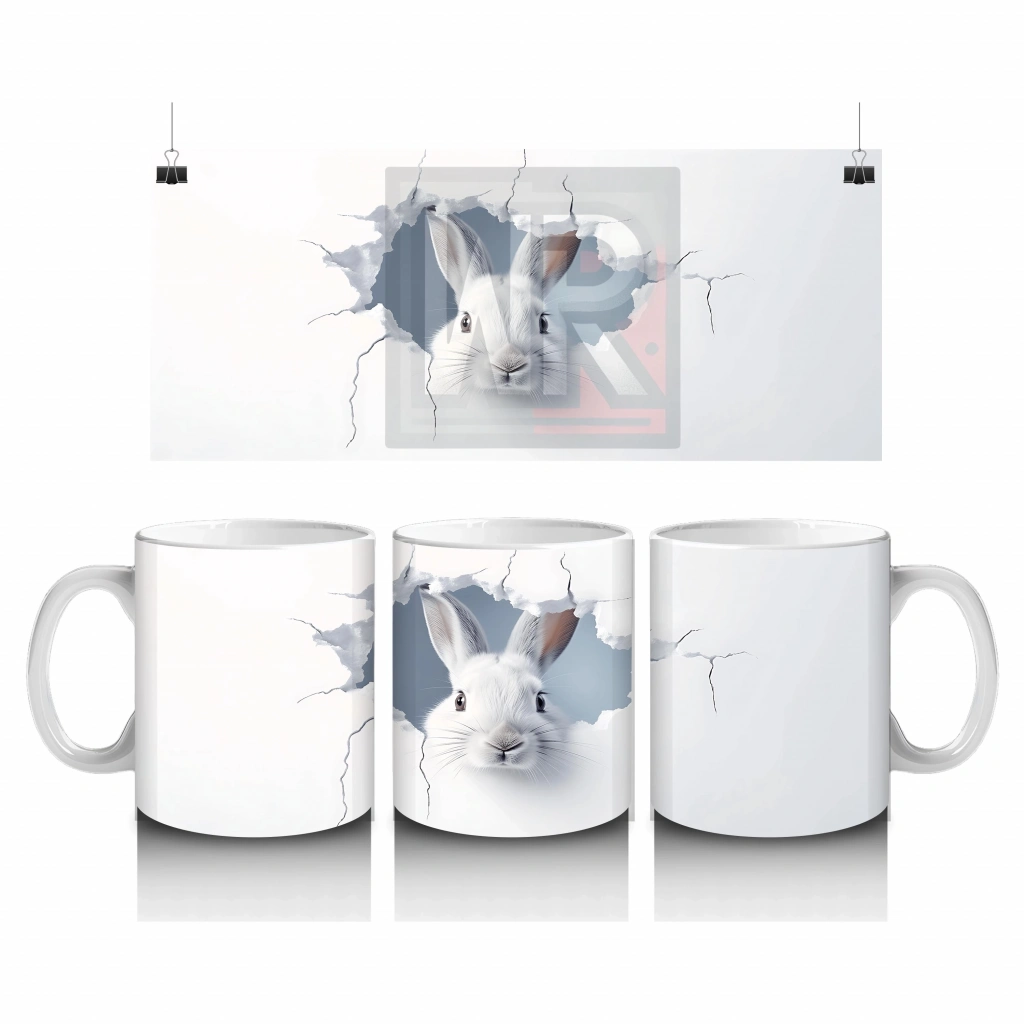 Yırtık Desen Arasından Çıkan Bembeyaz Tavşan – Baskılı Kupa