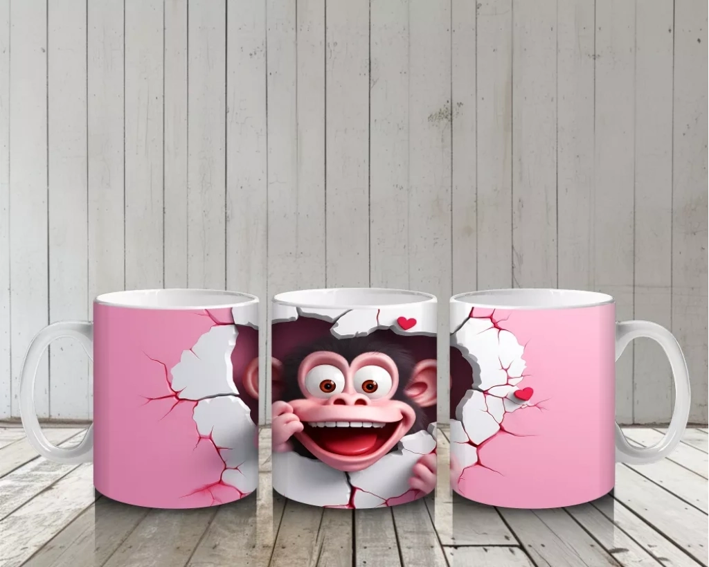 Yırtık Duvar Efektli Sevimli Maymun – Baskılı Kahve Kupası