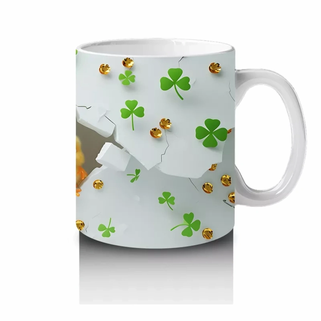 Yoncalarla çevrili tatlı civciv figürü, baharın enerjisini ve şansı simgeliyor. Canlı ve içten detayları sevenlere özel özgün bir kupa tasarımı.