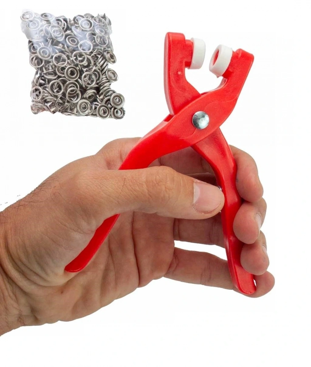 Pense Yuvarlak Halkalı Kuş Gözü Pense 100 Parça 5 mm, özellikle deri, tekstil veya kauçuk bağlamalarda delik delme ve halkaları bastırma işlemleri için ideal bir araçtır.