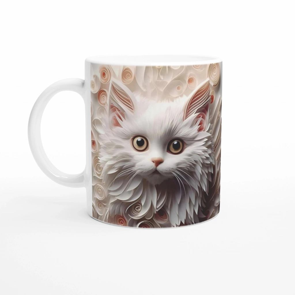 Zarif Beyaz Kedi Baskılı Kupa Bardak