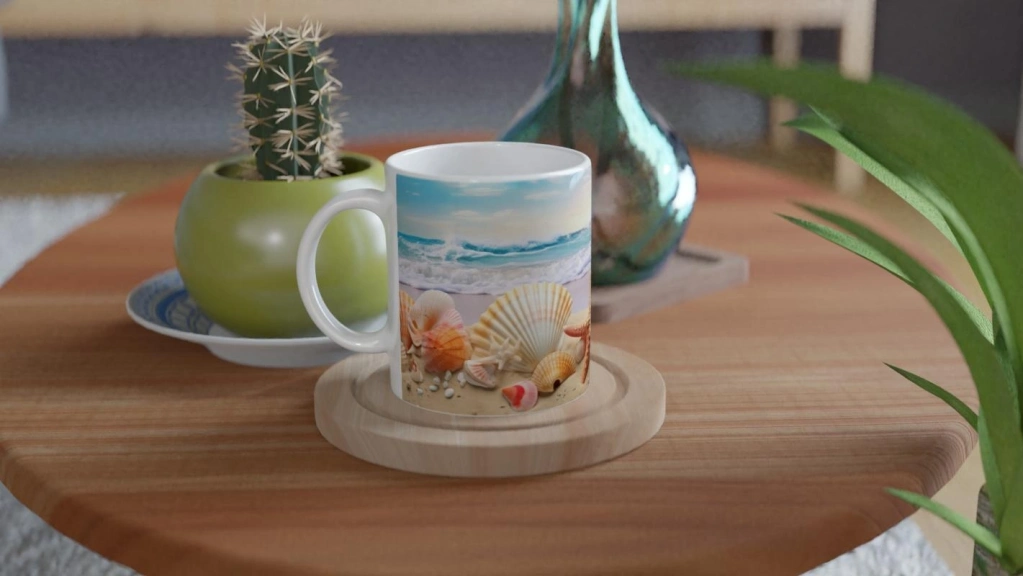 Doğal renk geçişleri ve deniz kokusunu çağrıştıran tasarımıyla bu özel kupa bardak, sahil romantizmini yansıtır.