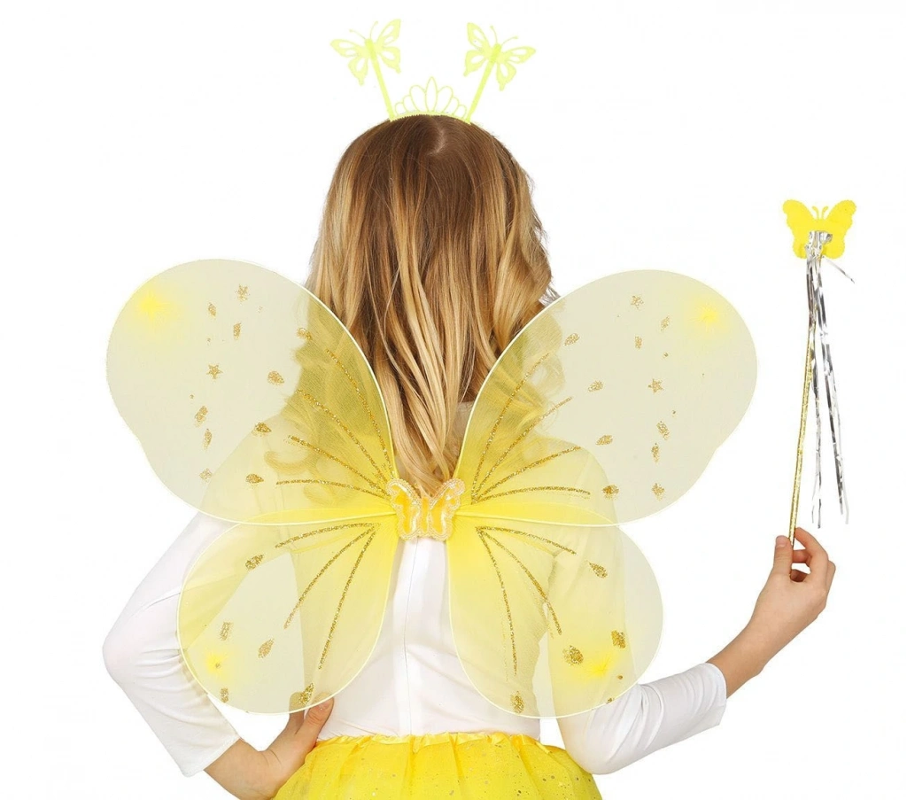Sarı Kelebek Erkek-kız Seti – 50 Cm Kelebek Kanadı, Taç Ve Asa