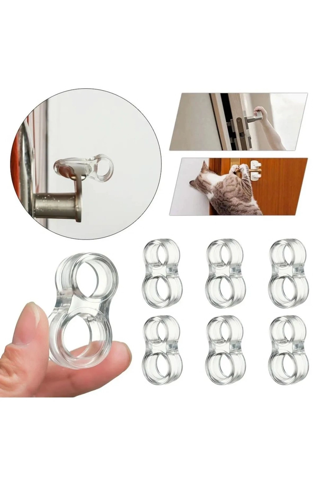 Şeffaf kapı stoperini sıcak suda 5 dakika beklettikten sonra esneterek kapı koluna takabilirsiniz.