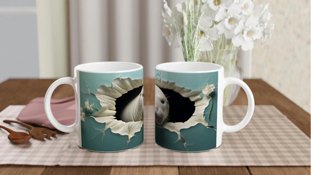 Tatlı fok balığı ve zarif çiçek dokunuşlarıyla hazırlanan bu su altı temalı kupa bardak, gülümseten bir deniz esintisi sunuyor.
