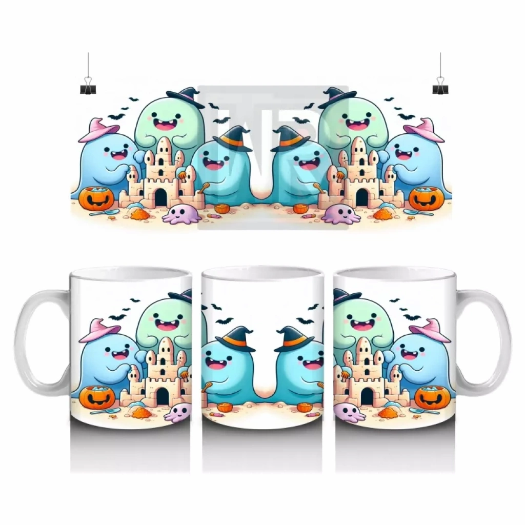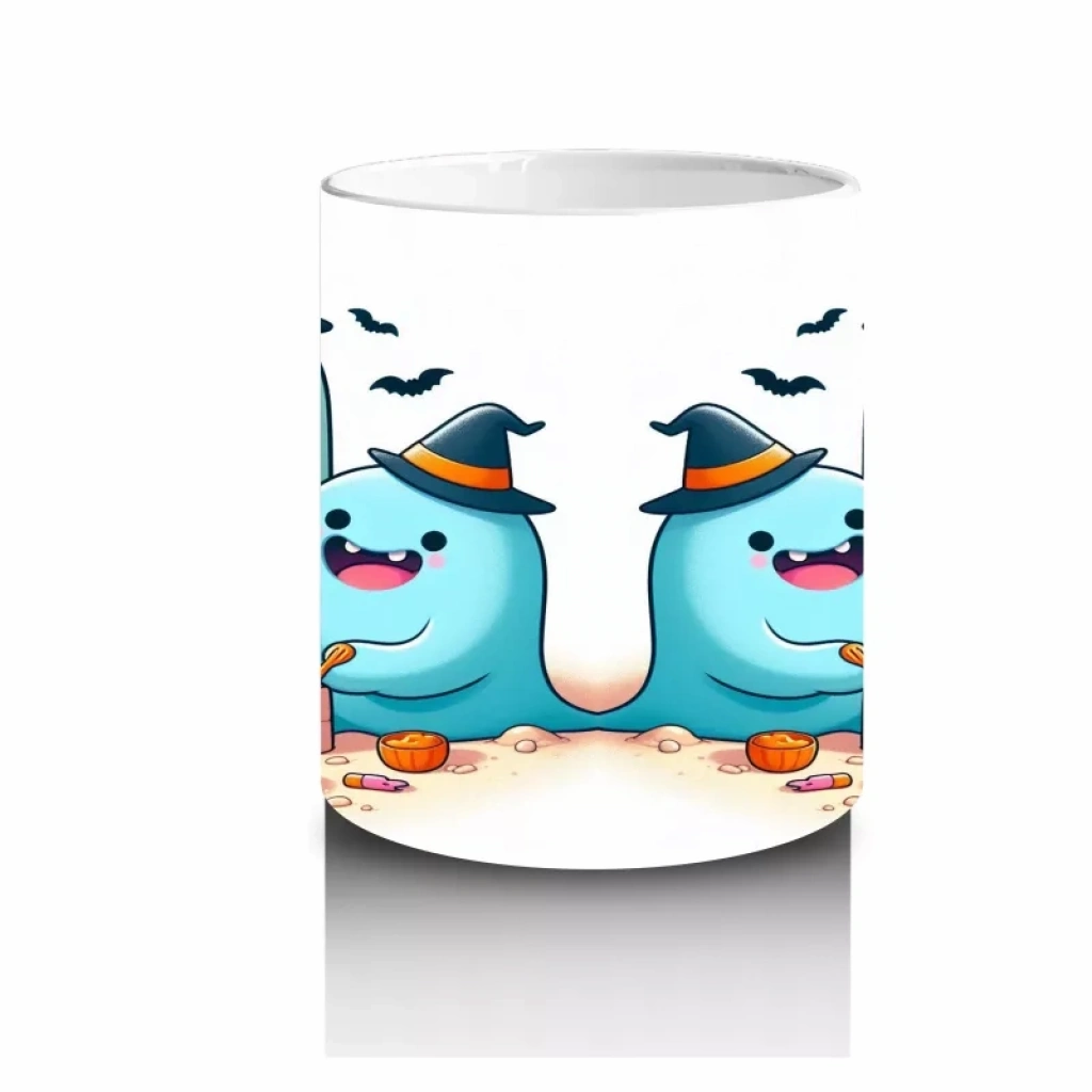 Sevimli hayaletler ve rengarenk şekerlemeler temalı bu kupa bardak, Cadılar Bayramı kutlamalarınıza tatlı bir dokunuş yapar.