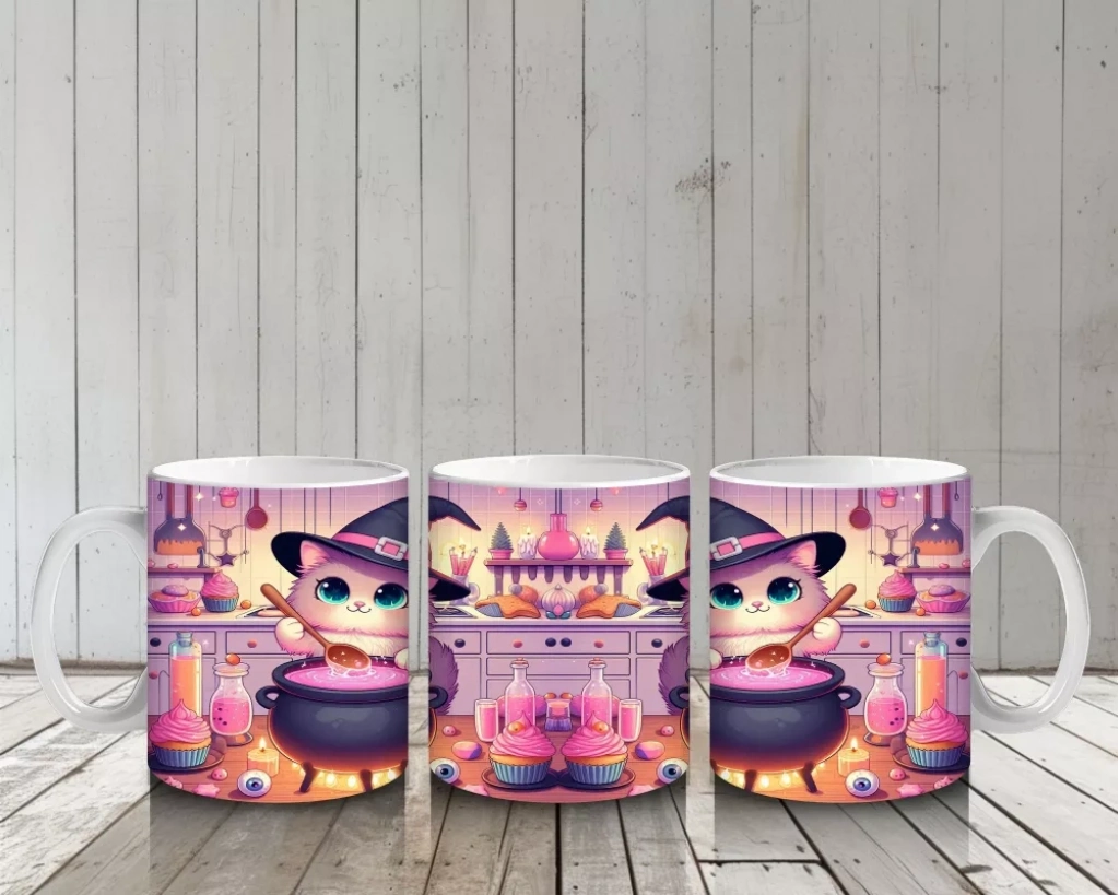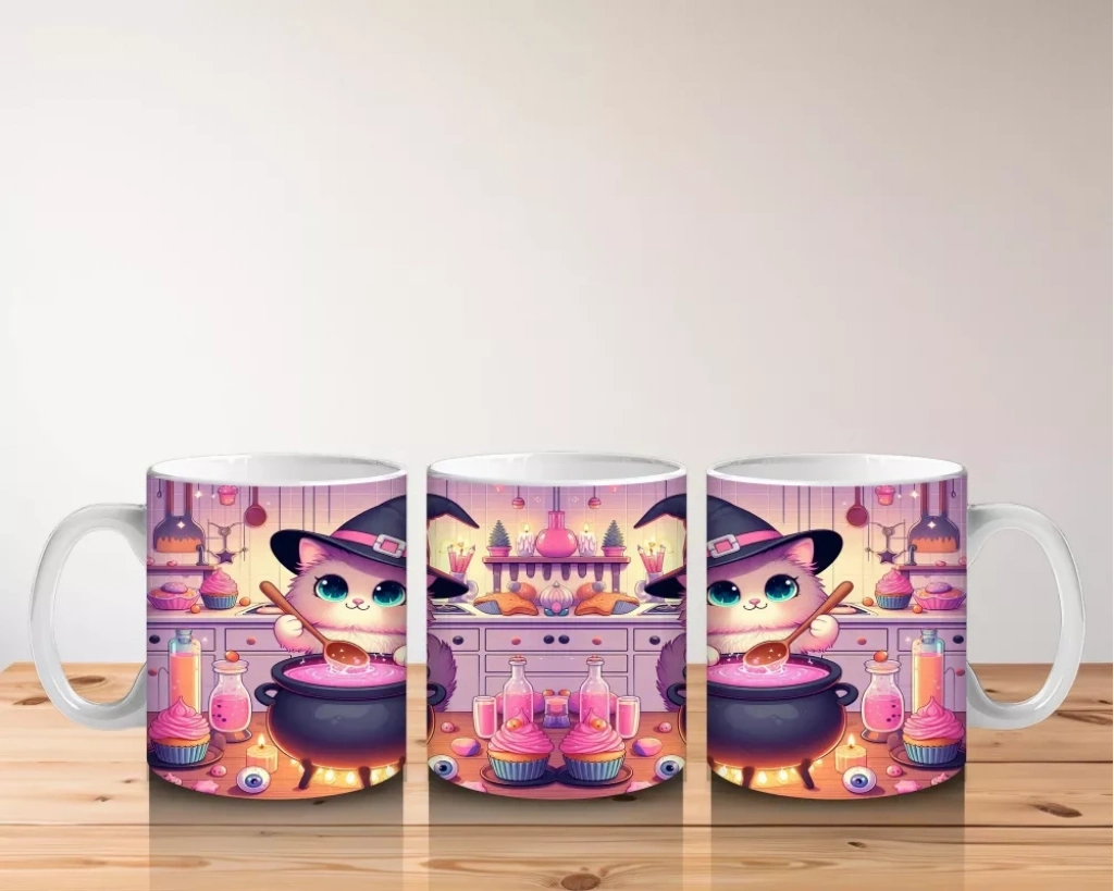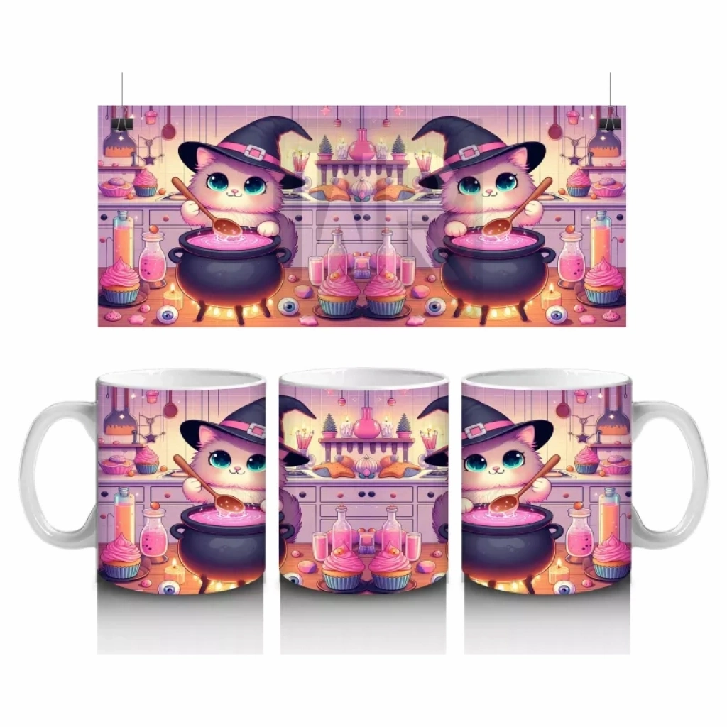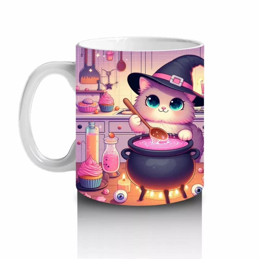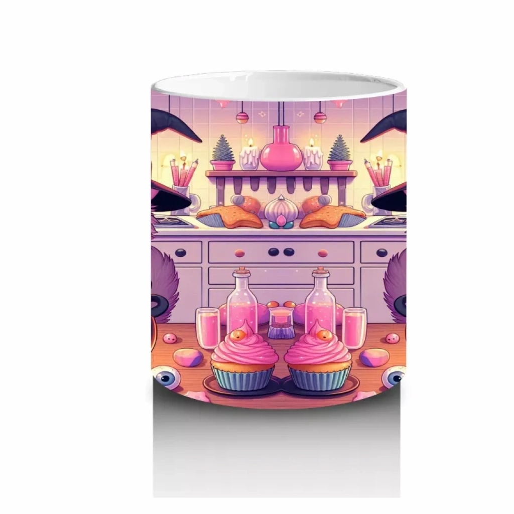 Sevimli Pembe Cadı Kız Figürlü Renkli Cadılar Bayramı Baskılı Kupa BardakSevimli pembe cadı kız figürüyle tasarlanan bu renkli kupa bardak, Cadılar Bayramı’na tatlı ve neşeli bir hava katar.
