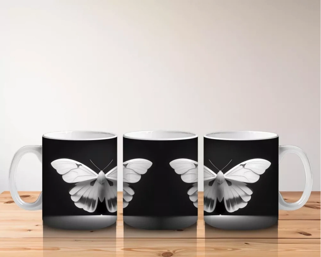 Siyah Beyaz Zarif Kelebekler – Baskılı Kahve Kupası