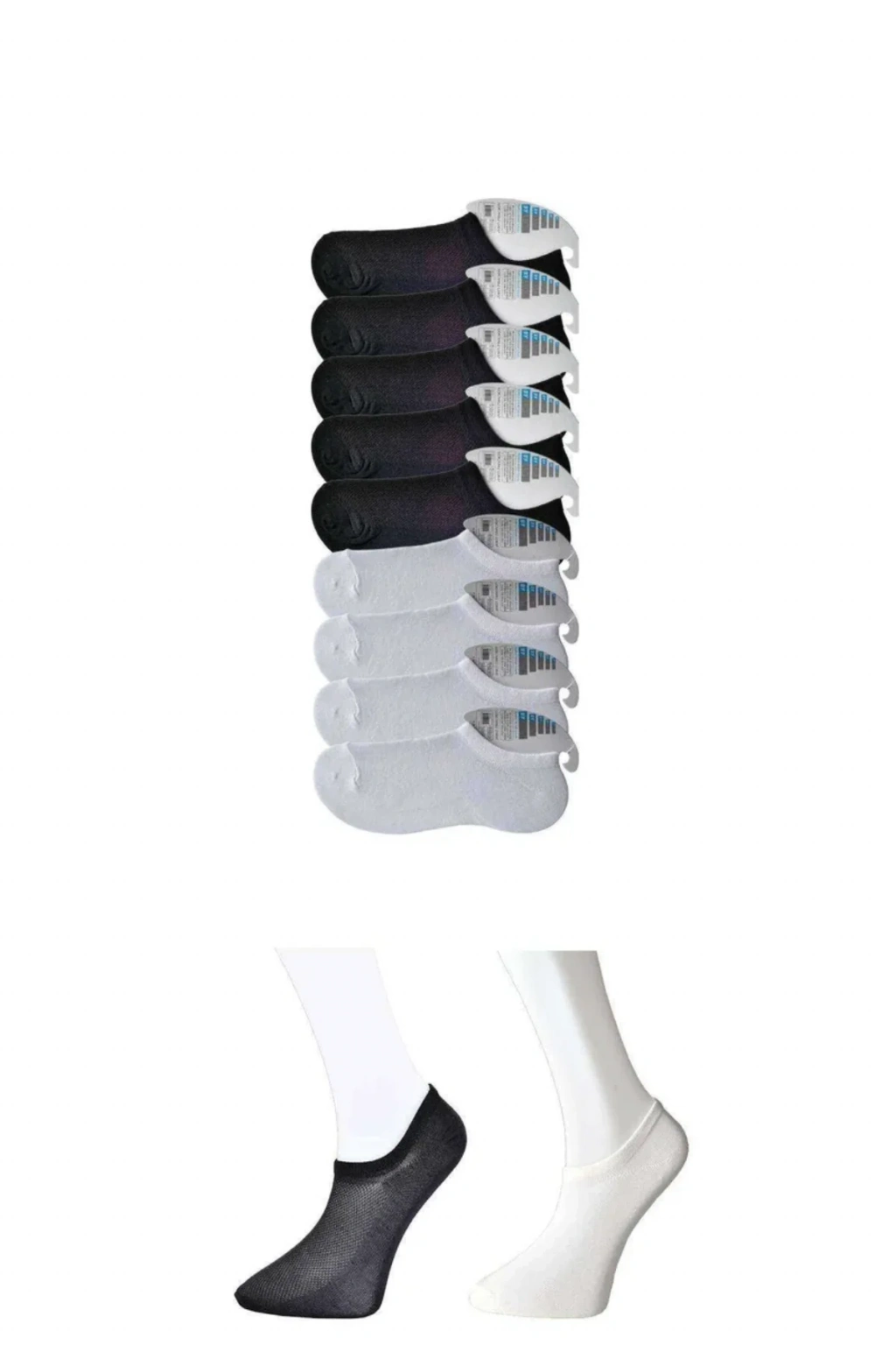 Siyah ve Beyaz Erkek Görünmez Çorap 9 çift