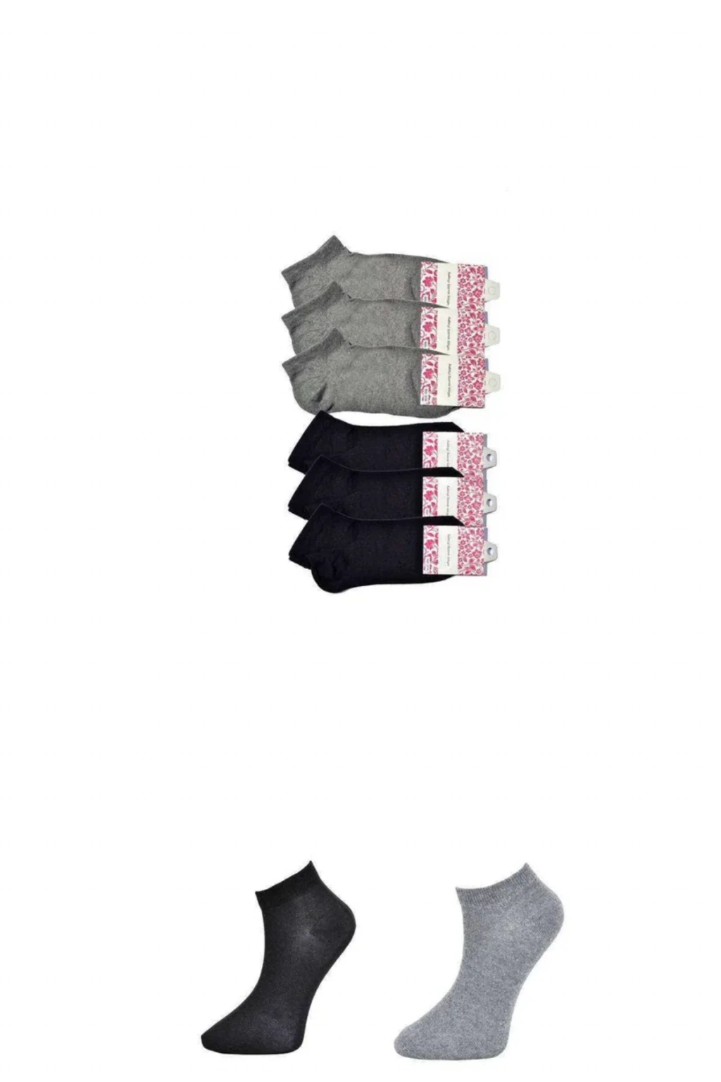 Siyah ve Gri Kadın Bilek Çorap 6 çift