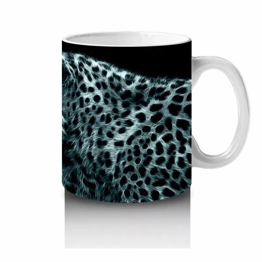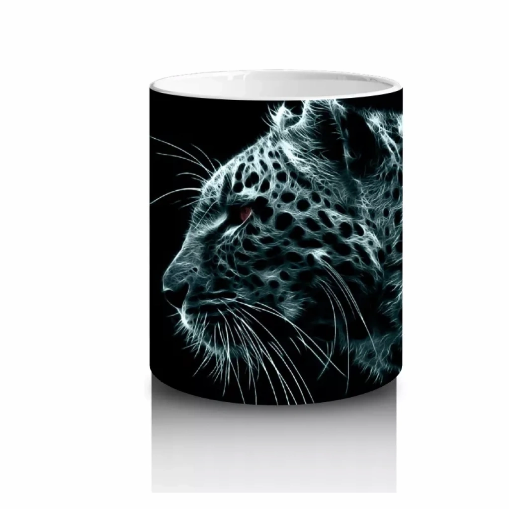 Siyah zemin üzerine işlenen etkileyici bakışlara sahip bu leopar portresi, zarafet ve vahşi doğayı bir araya getiriyor. Şıklığı ve gizemi sevenlere özel, dikkat çekici bir kupa tasarımı.