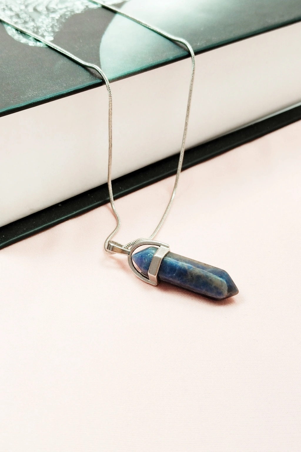 Sodalit Doğal Taşı Zincirli El Yapımı Tasarımlı Kolye Uç: 3,5 cm Zincir: 20 cm Kutulu