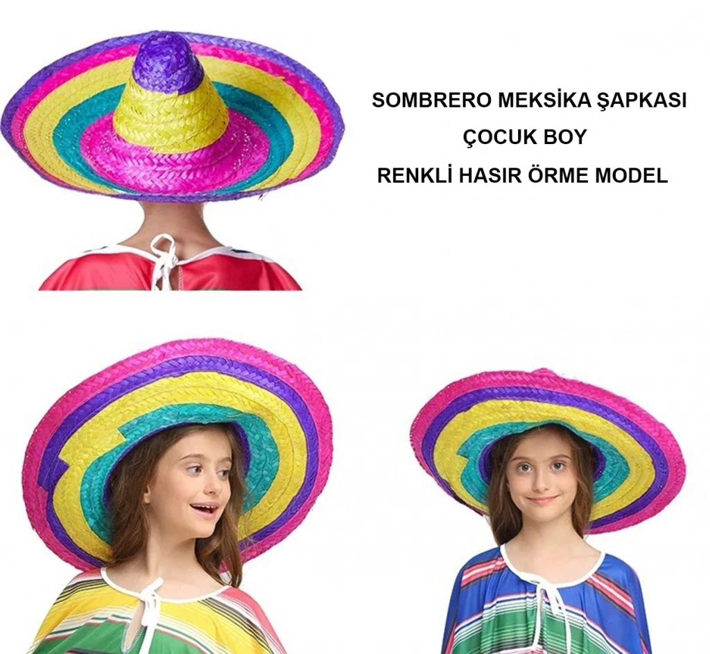 • Renkli ve Eğlenceli Tasarım: Meksika kültürüne ait geleneksel sombrero şapkası, rengarenk ipliklerle örülmüş detaylarıyla çocukların ilgisini çeker.