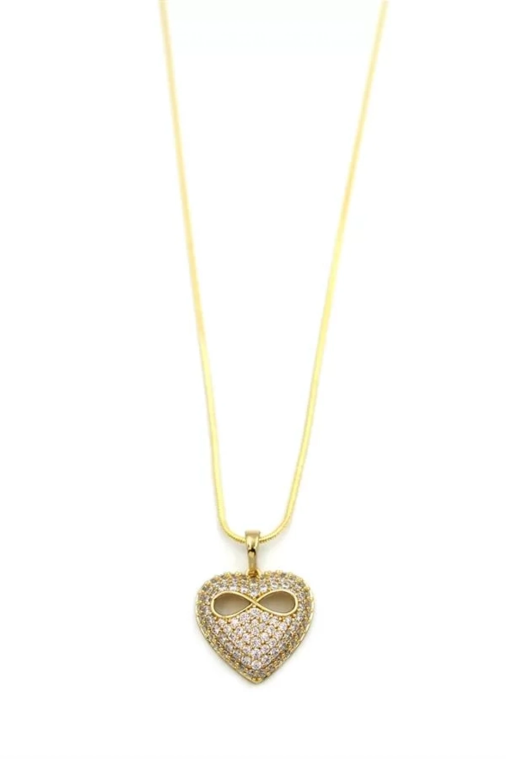 Sonsuz Aşk Taşlı Kalp Kolye - 14K Altın
