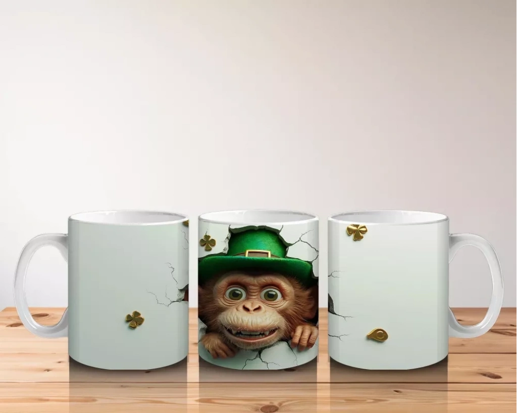 Yeşil şapkası ve neşeli ifadesiyle bu maymun tasarımı, St. Patrick’s Day coşkusunu yansıtan eğlenceli bir detay sunuyor. Sıradışı hediyeler arayanlara birebir!