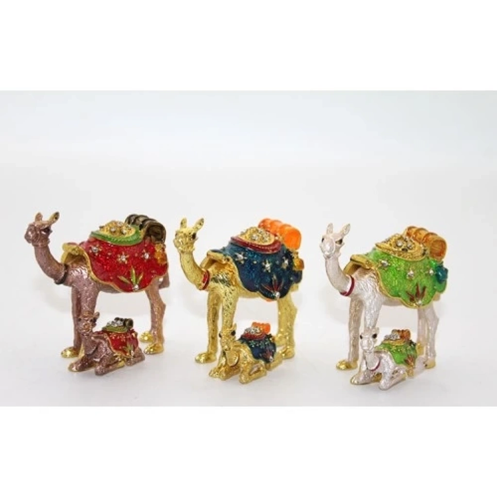 SWAROVSKİ YAVRULU DEVE MODEL 1Ürün ÖzellikleriSwarovski Yavrulu Deve Model 1, özel tasarımı ve ince işçiliğiyle göz kamaştıran dekoratif bir aksesuardır. Swarovski taşlarla süslenmiş bu koleksiyonluk obje, zarif detaylarıyla dikkat çeker. Metal gövdesi ve emaye kaplaması sayesinde uzun ömürlü ve dayanıklı bir yapıya sahiptir. Yavrulu deve figürü, otantik ve geleneksel bir hava katarken, ev ve ofis dekorasyonuna farklı bir dokunuş sağlar. Koleksiyoncular ve dekoratif aksesuar sevenler için ideal bir seçimdir.Not: Ürün farklı renklerde mevcuttur ve stok durumuna göre karışık gönderilmektedir. Paket İçeriği1 Adet Swarovski Yavrulu Deve