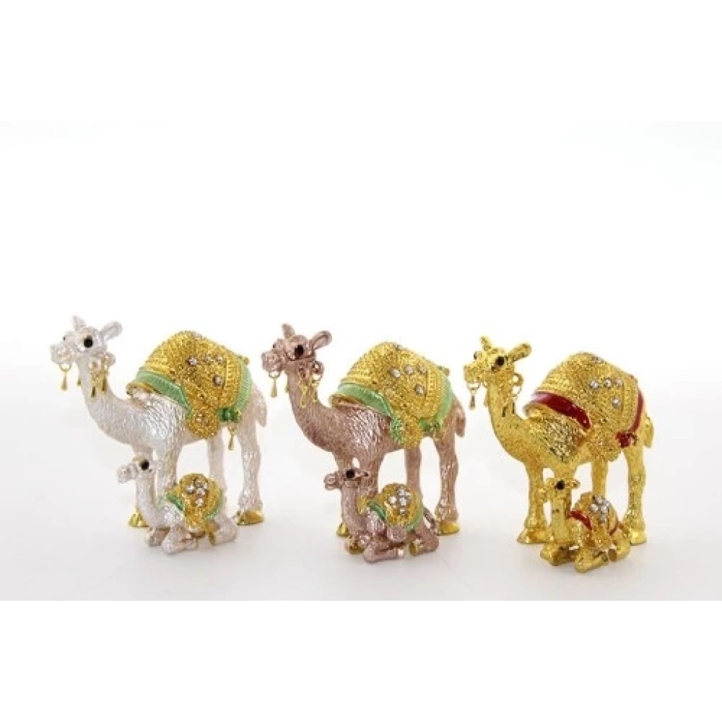 SWAROVSKİ YAVRULU DEVE MODEL 2Ürün ÖzellikleriSwarovski Yavrulu Deve Model 2, zarif ve göz alıcı tasarımıyla dekoratif aksesuar severler için özel olarak üretilmiştir. Swarovski taşlarla süslenmiş detayları, metal gövde ve emaye kaplama ile tamamlanmıştır. Yavrulu deve figürü, otantik tasarımı ve ince işçiliğiyle vitrin, masa ve raf dekorasyonlarında şıklık sağlar. Hem koleksiyonluk olarak hem de hediyelik eşya olarak ideal bir seçimdir.Paket İçeriği1 Adet Swarovski Yavrulu Deve