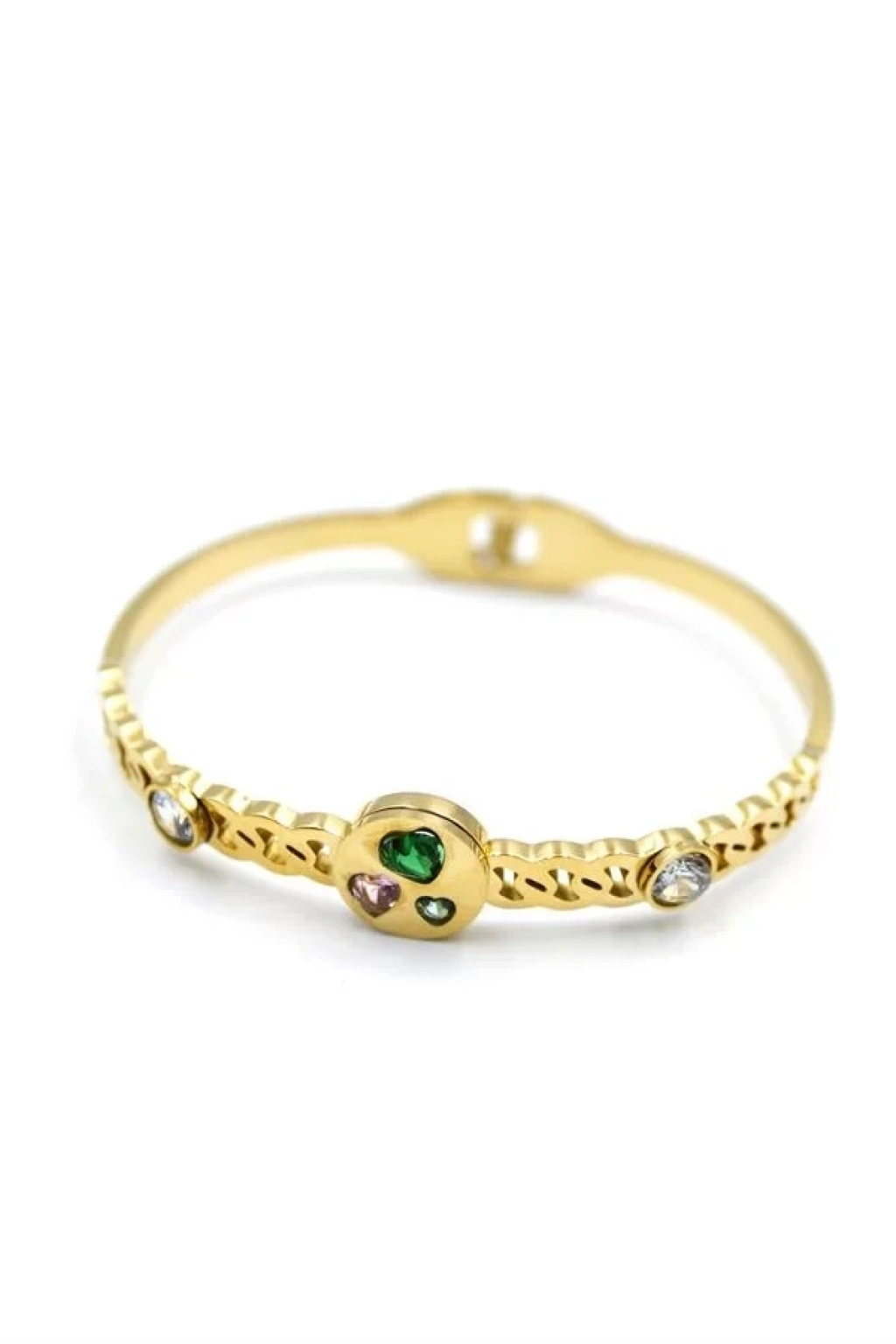 Taşlı Kalp Bilezik - Altın