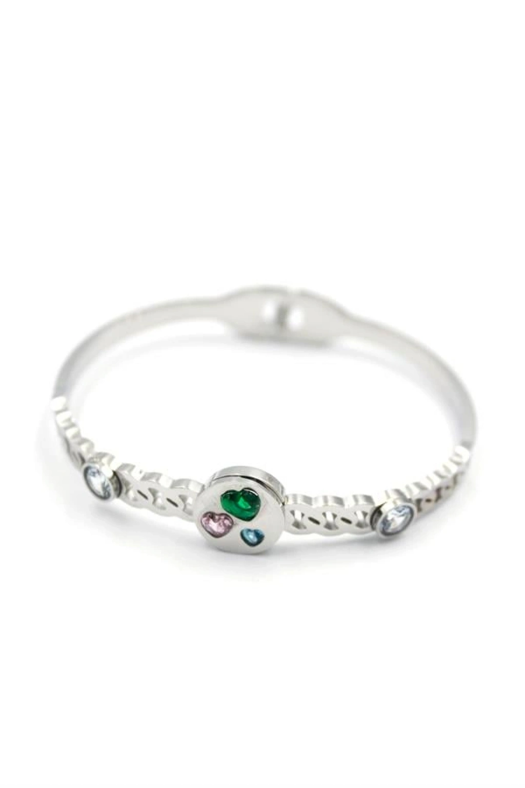 Taşlı Kalp Bilezik - Gümüş