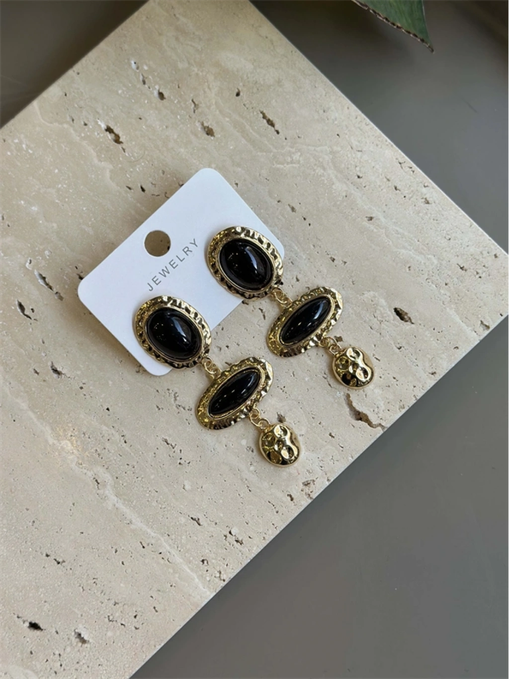 Taşlı Küpe - Siyah