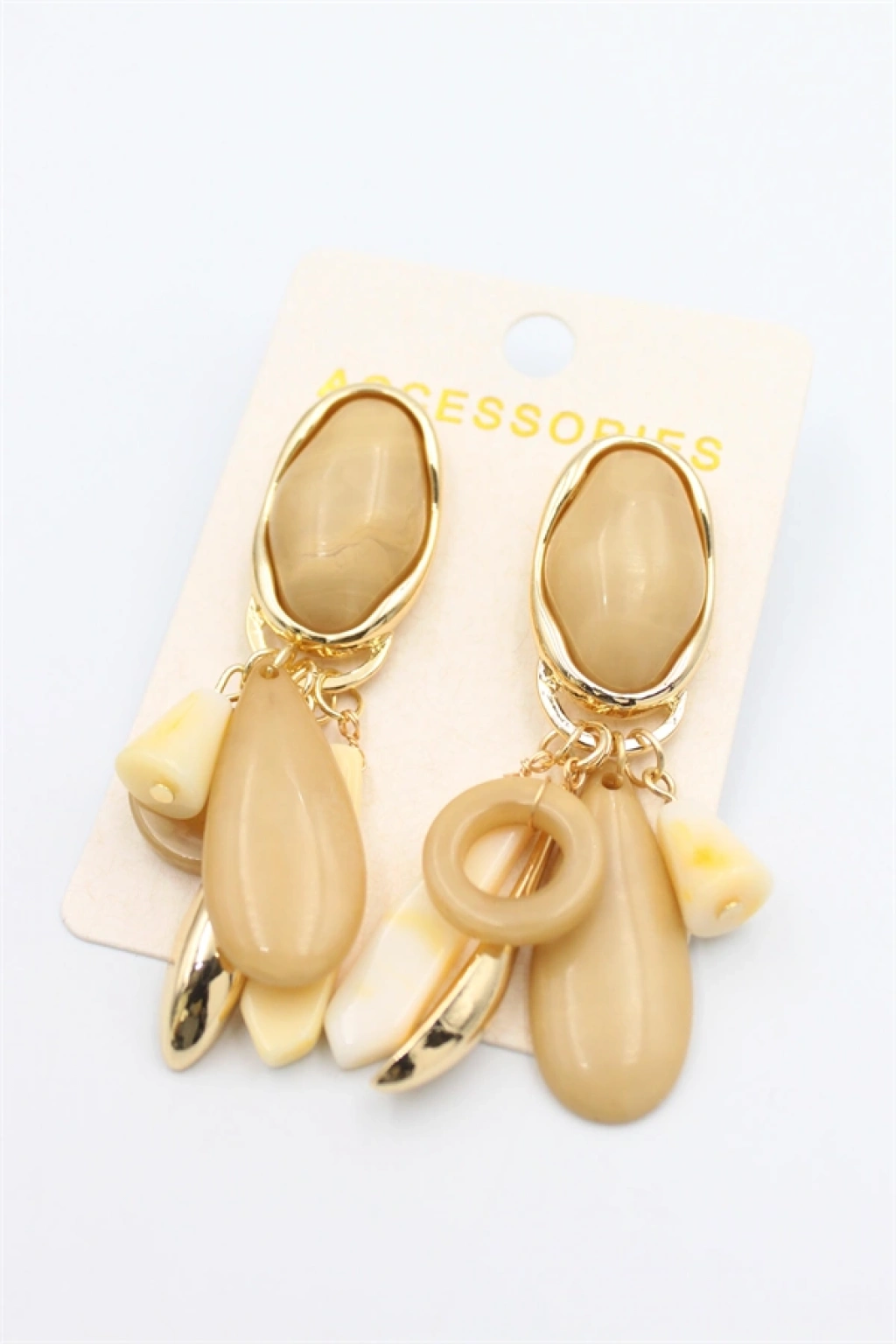 Taşlı Sallantılı Küpe - Açık Kahverengi