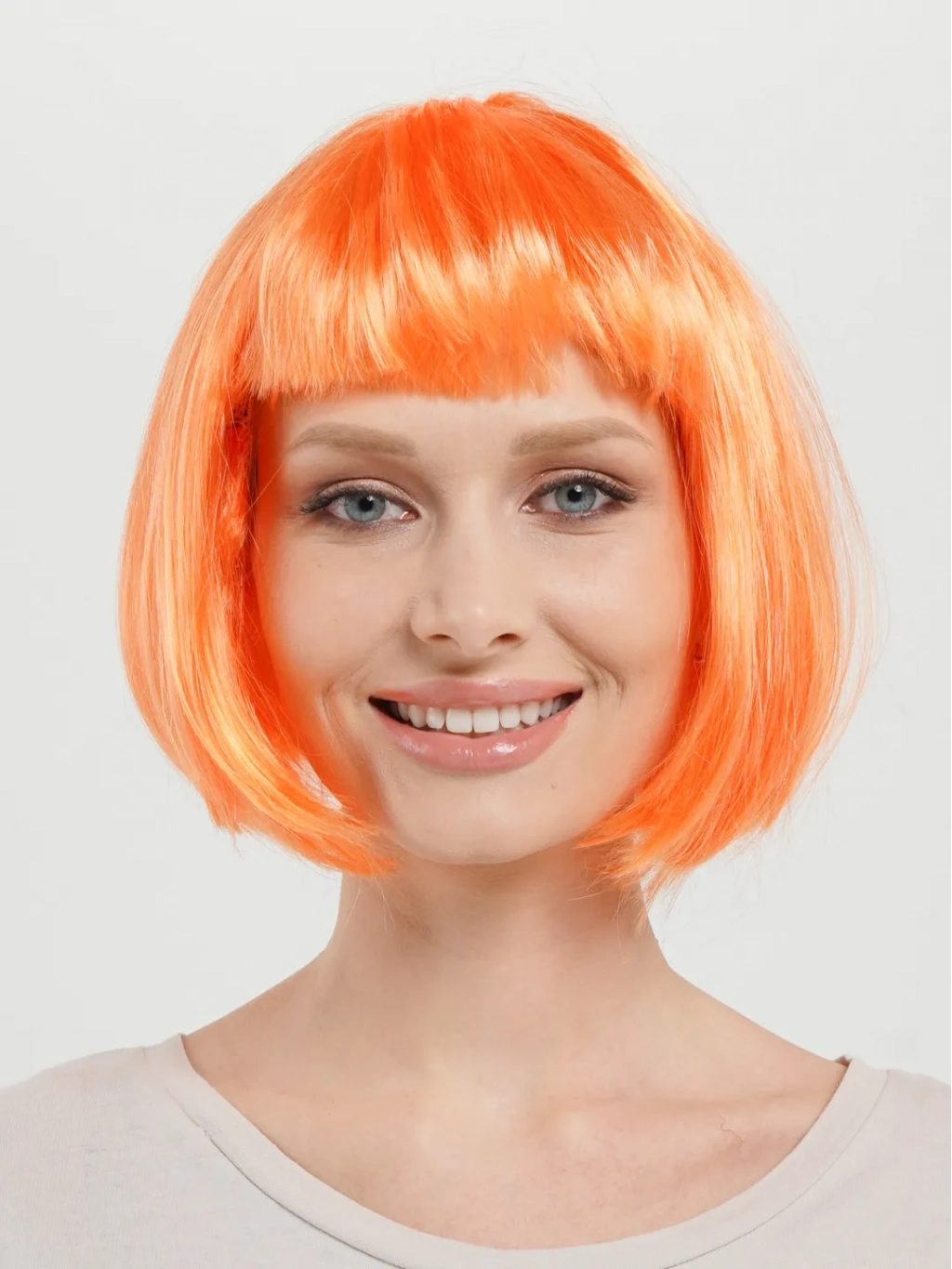 Turuncu Renk Küt Parti Peruğu Kısa Takma Saç