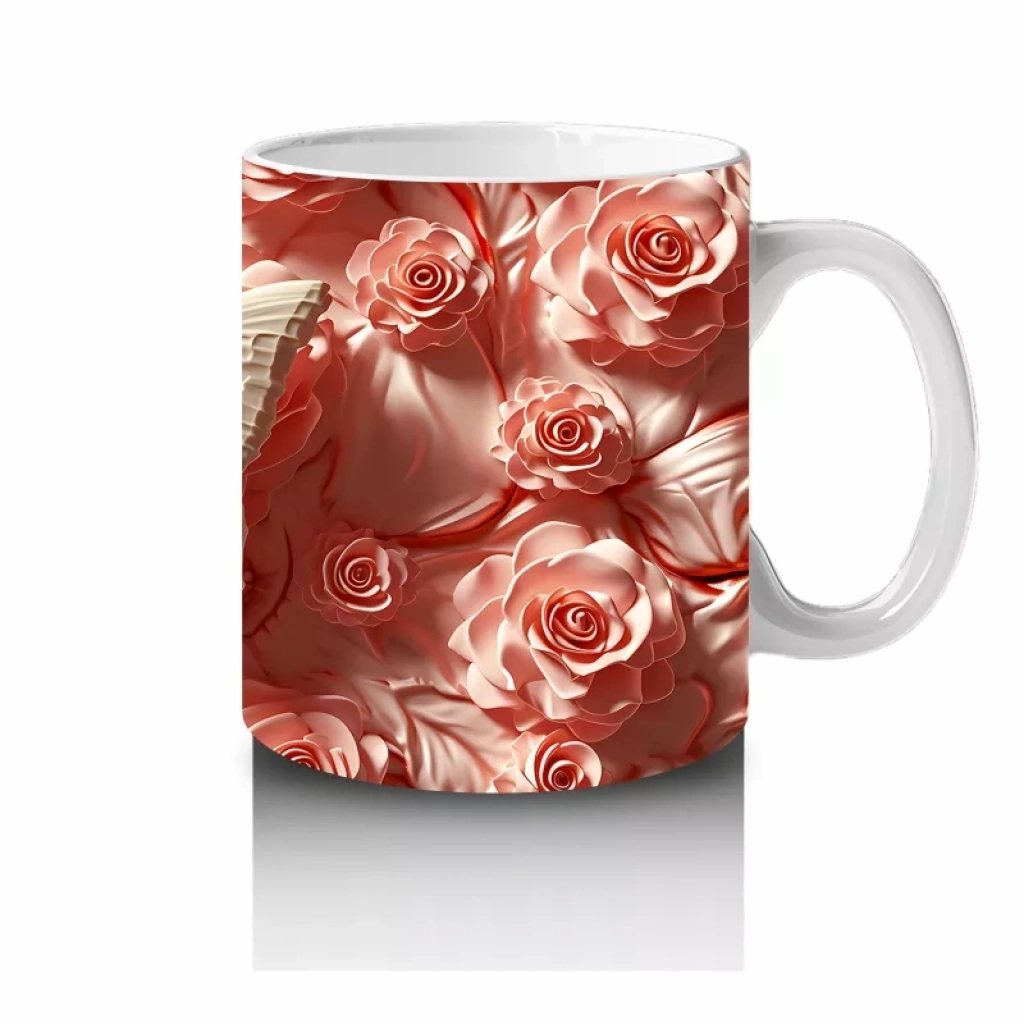 Turuncu tonlardaki kabartmalı çiçekler arasında zarafetle süzülen krem renkli kelebek, doğallıkla sanatı buluşturuyor. Bahar esintilerini sofralara taşıyan zarif bir kupa tasarımı.