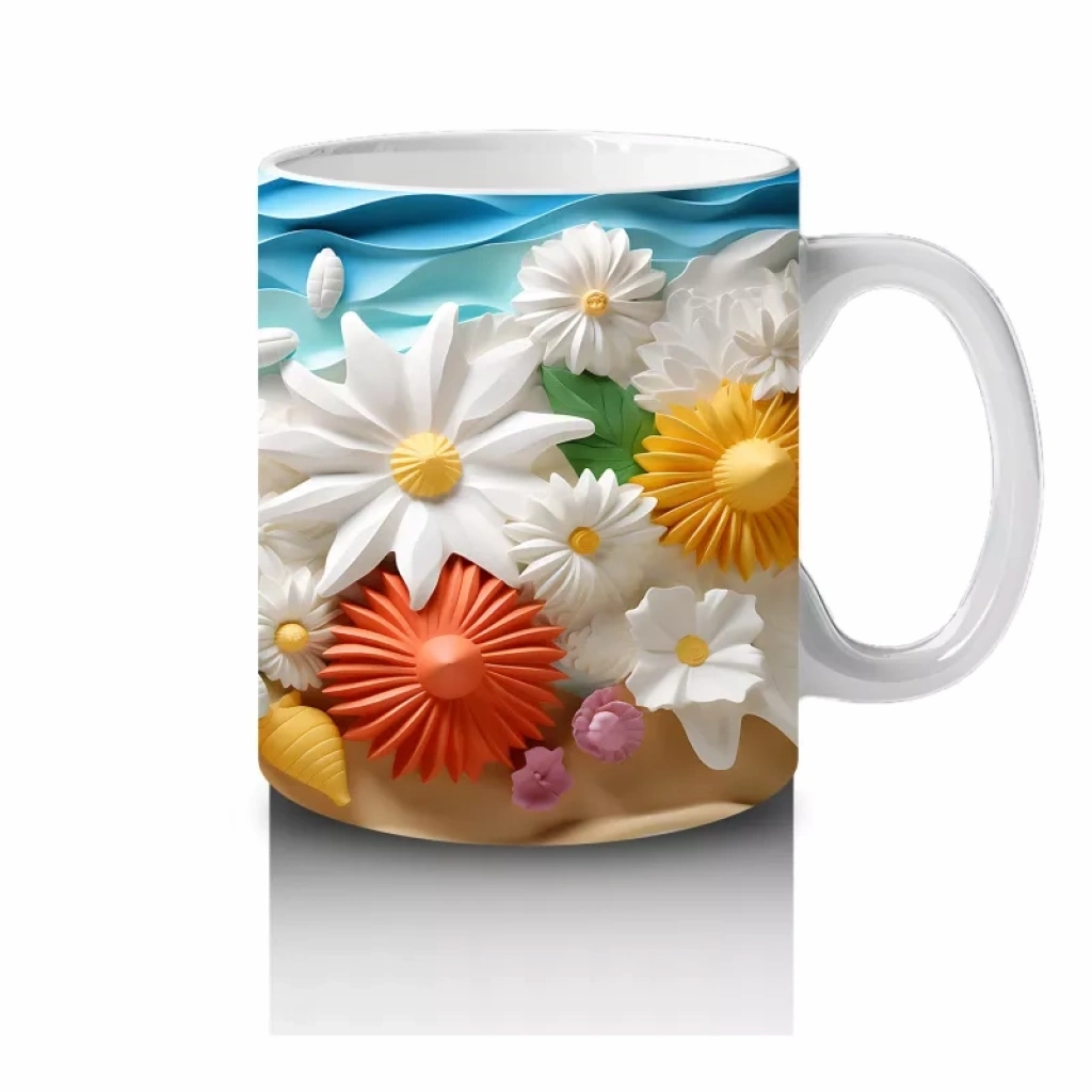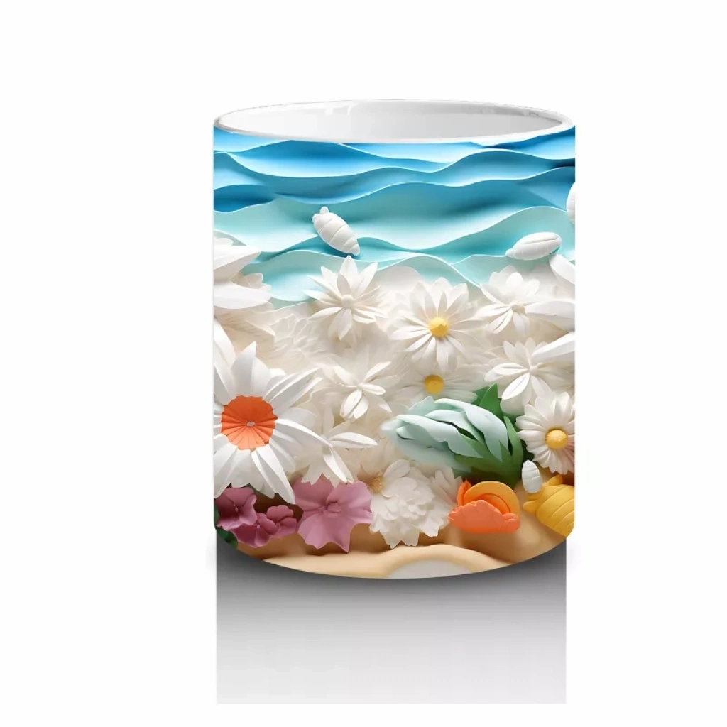 Canlı turuncu tonlarla bezenmiş tropikal kuşlar ve egzotik çiçekler, sıcak ve enerjik bir atmosfer yaratıyor. Yaz ruhunu yansıtan bu tasarım, ferah ve neşeli bir kupa arayanlara hitap ediyor.