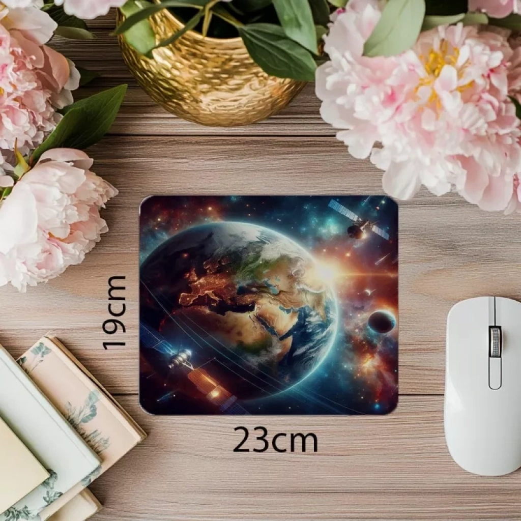 Uydularla Çevrili Gerçekçi Gezegen Mousepad - 19x23 cm 2 mm Dikdörtgen İthal Baskılı Mouse Pad