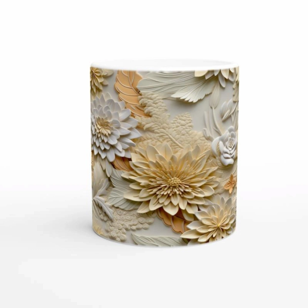 Krem, vanilya ve fildişi tonlarının ahenkle dans ettiği bu zarif kupa bardak, üç boyutlu çiçek motifleriyle nostaljik bir bahar esintisi sunuyor. Zarafeti detaylarda saklayan tasarımı, her yudumda huzur...
