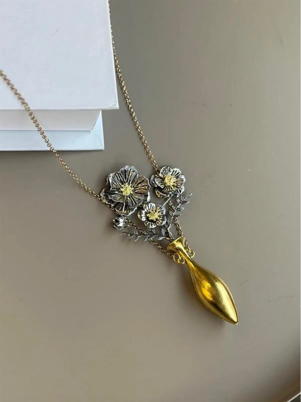 Vazodaki Çiçekler Kolye - Altın