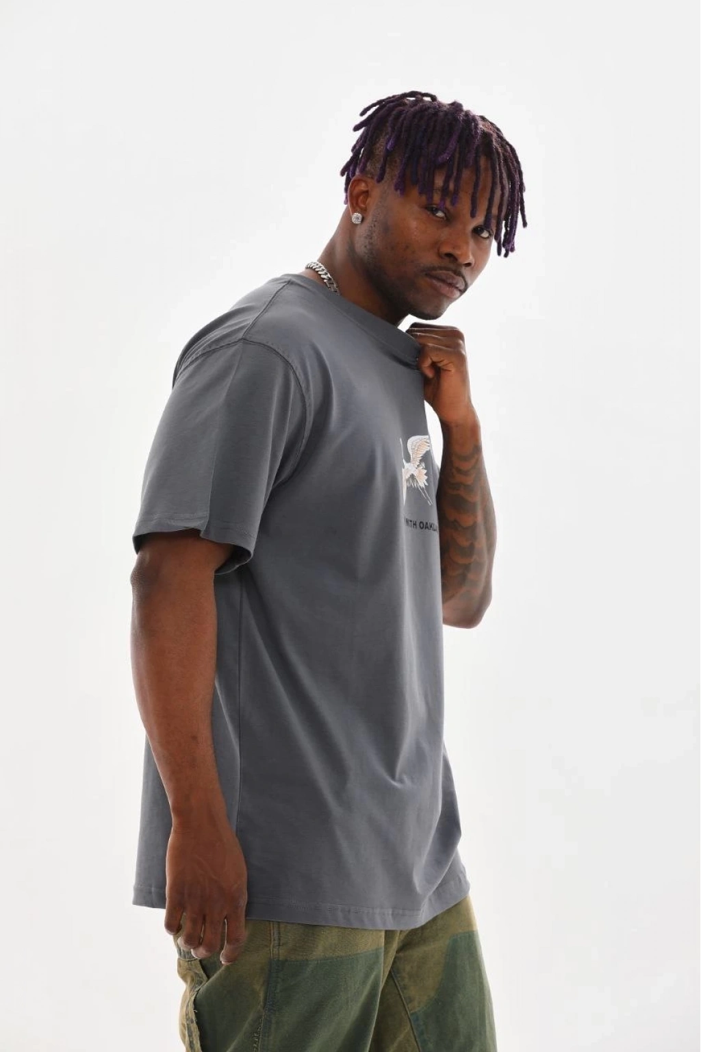 Baskılı Oversize T-Shirt - Füme -