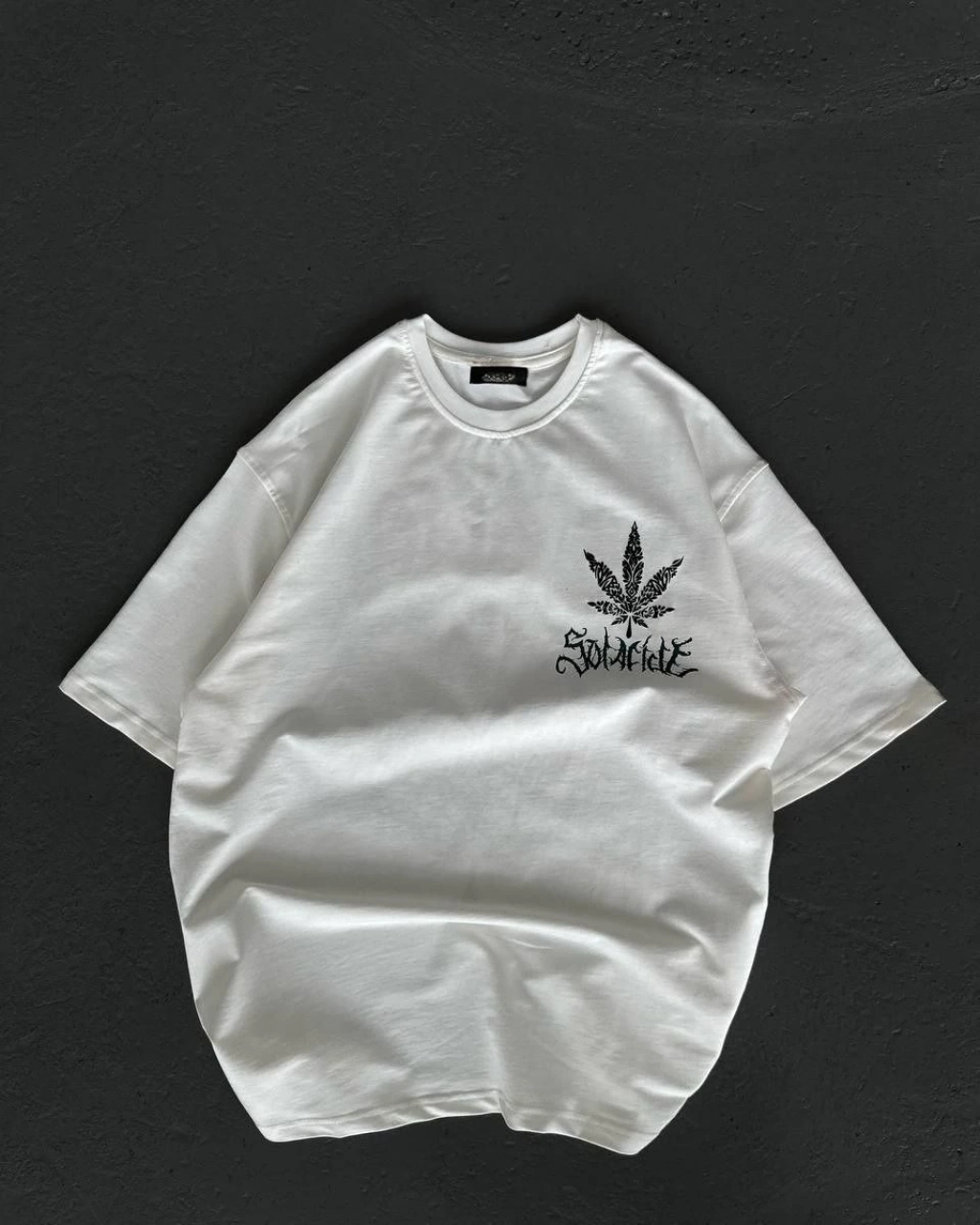 Bisiklet Yaka Baskılı Oversize T-Shirt - Beyaz -