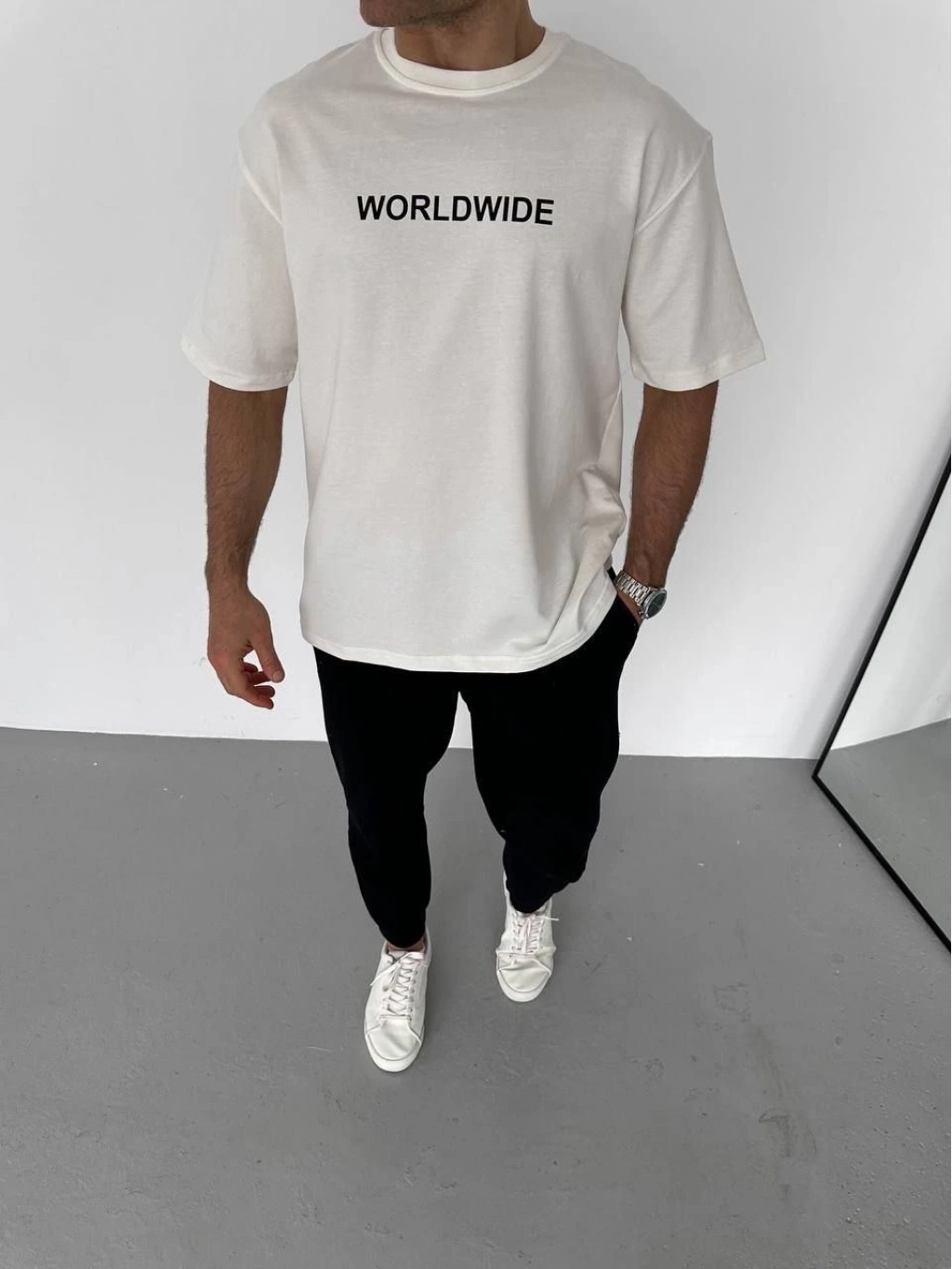 Bisiklet Yaka Baskılı Oversize T-Shirt - Beyaz -