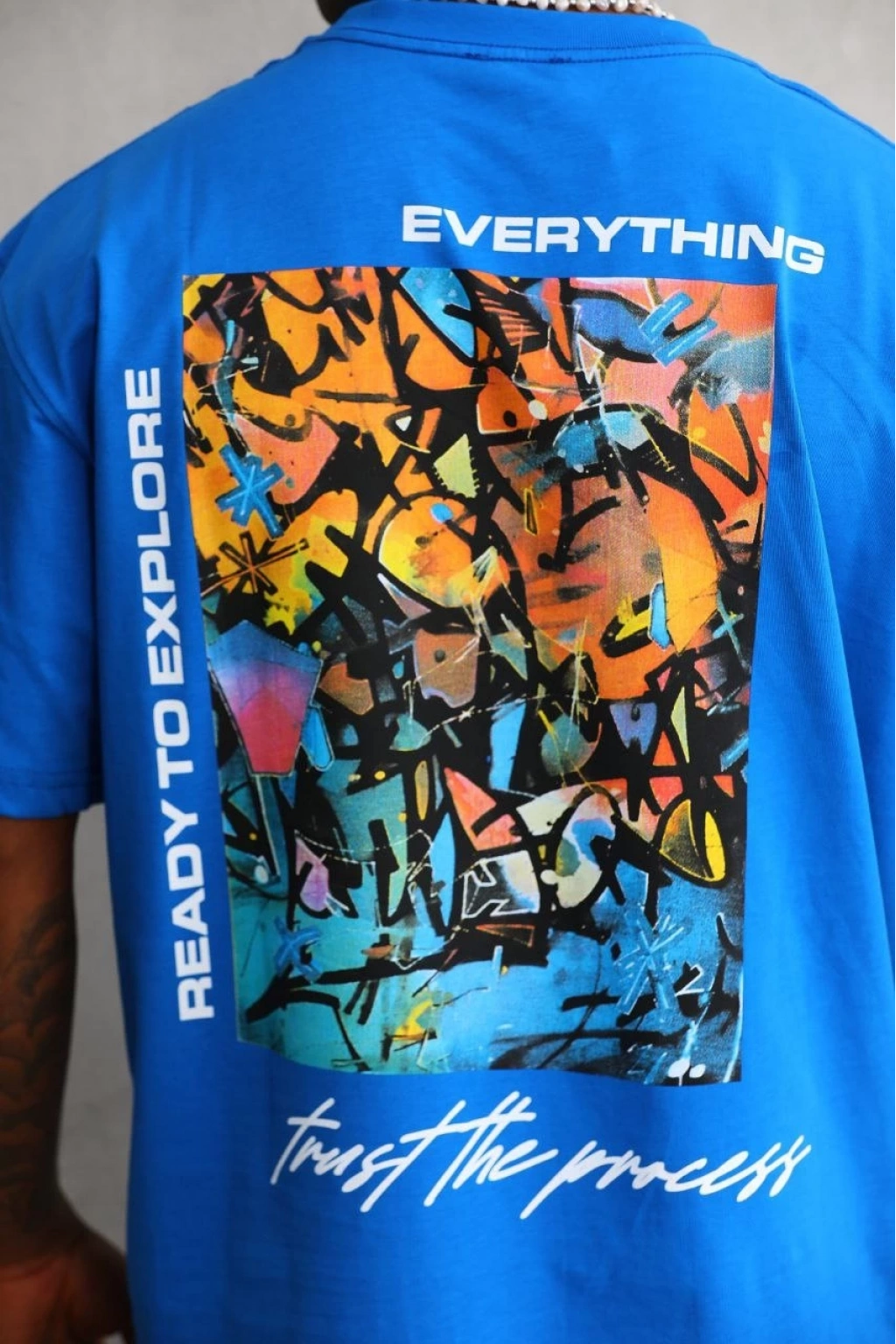 Bisiklet Yaka Baskılı Oversize T-Shirt - Mavi -