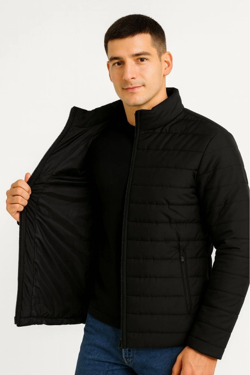 Bomber Mont Ceket – Su İtici Kumaş, Kapitone Astarlı, Fermuarlı, Kışlık - Siyah -