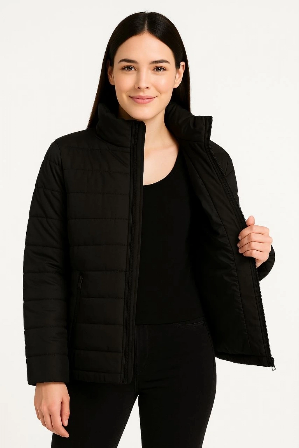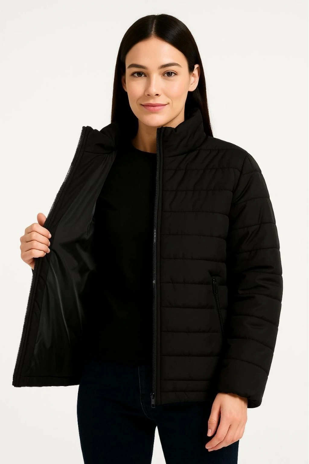 Bomber Mont Ceket – Su İtici Kumaş, Kapitone Astarlı, Fermuarlı, Kışlık - Siyah -